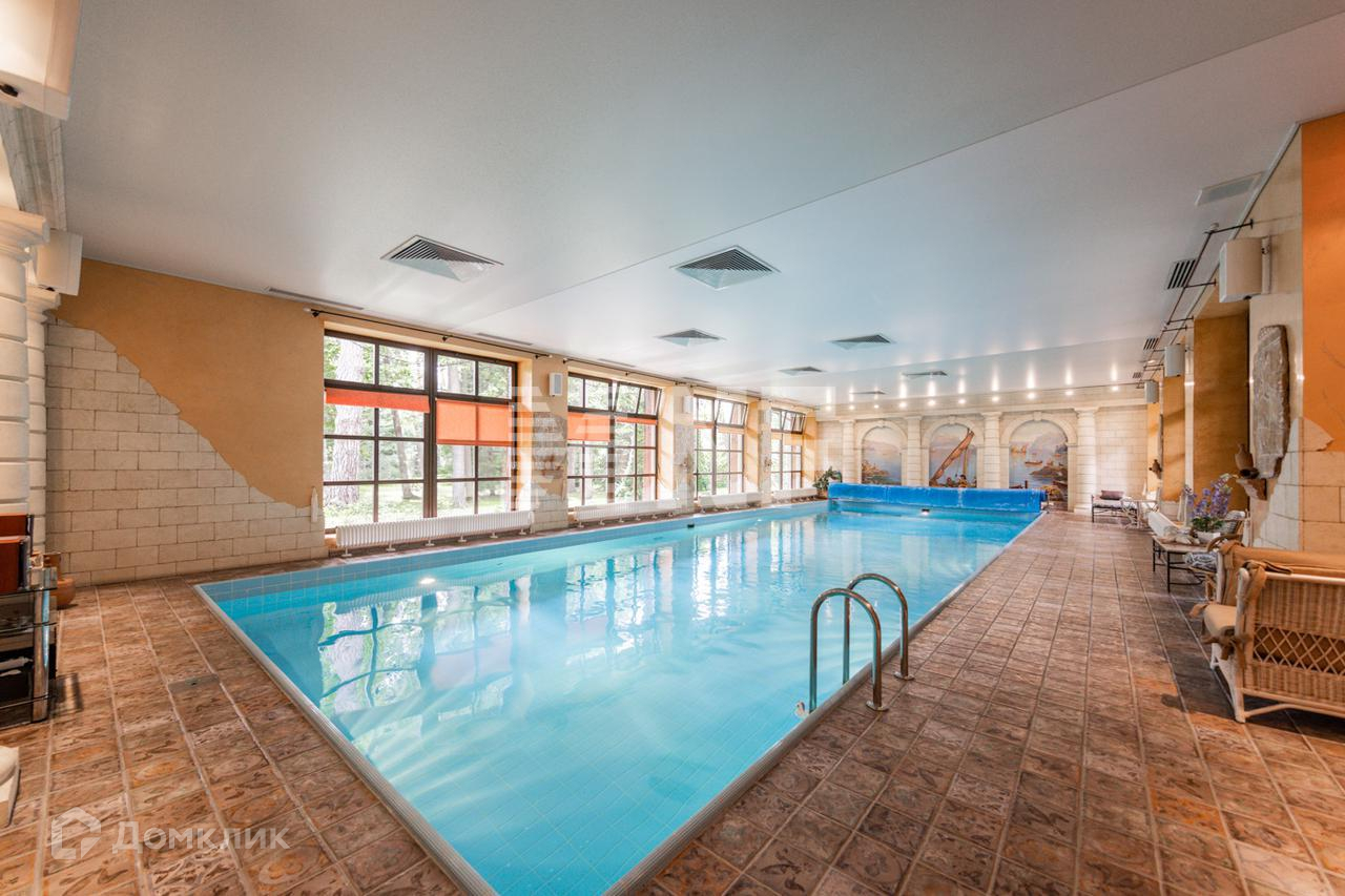 Отдельно стоящий бассейн: прихожая, комната отдыха с большим аквариумом, бассейн площадь 6/16 с противотоком, подсветкой, с/у, душевая, выход на террасу, солярий, спортивный зал с выходом на террасу, помещение для оборудования.