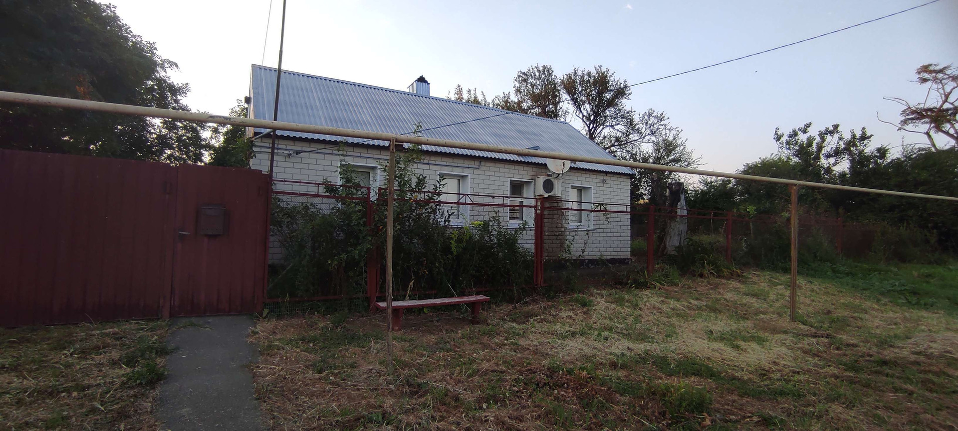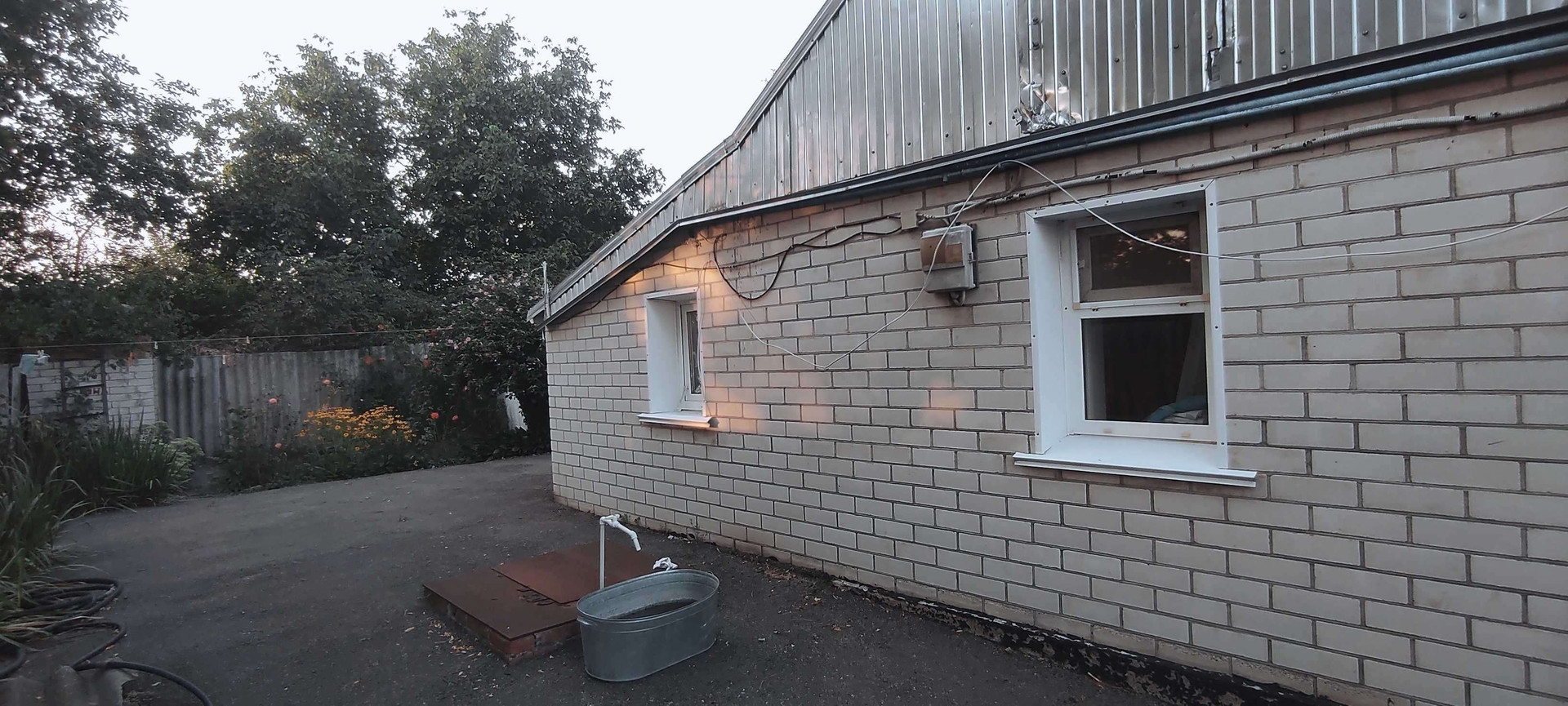 Двор заасфальтирован, крыша полностью менялась на металлопрофиль, дом обложен кирпичом, установлены  пластиковые окна.