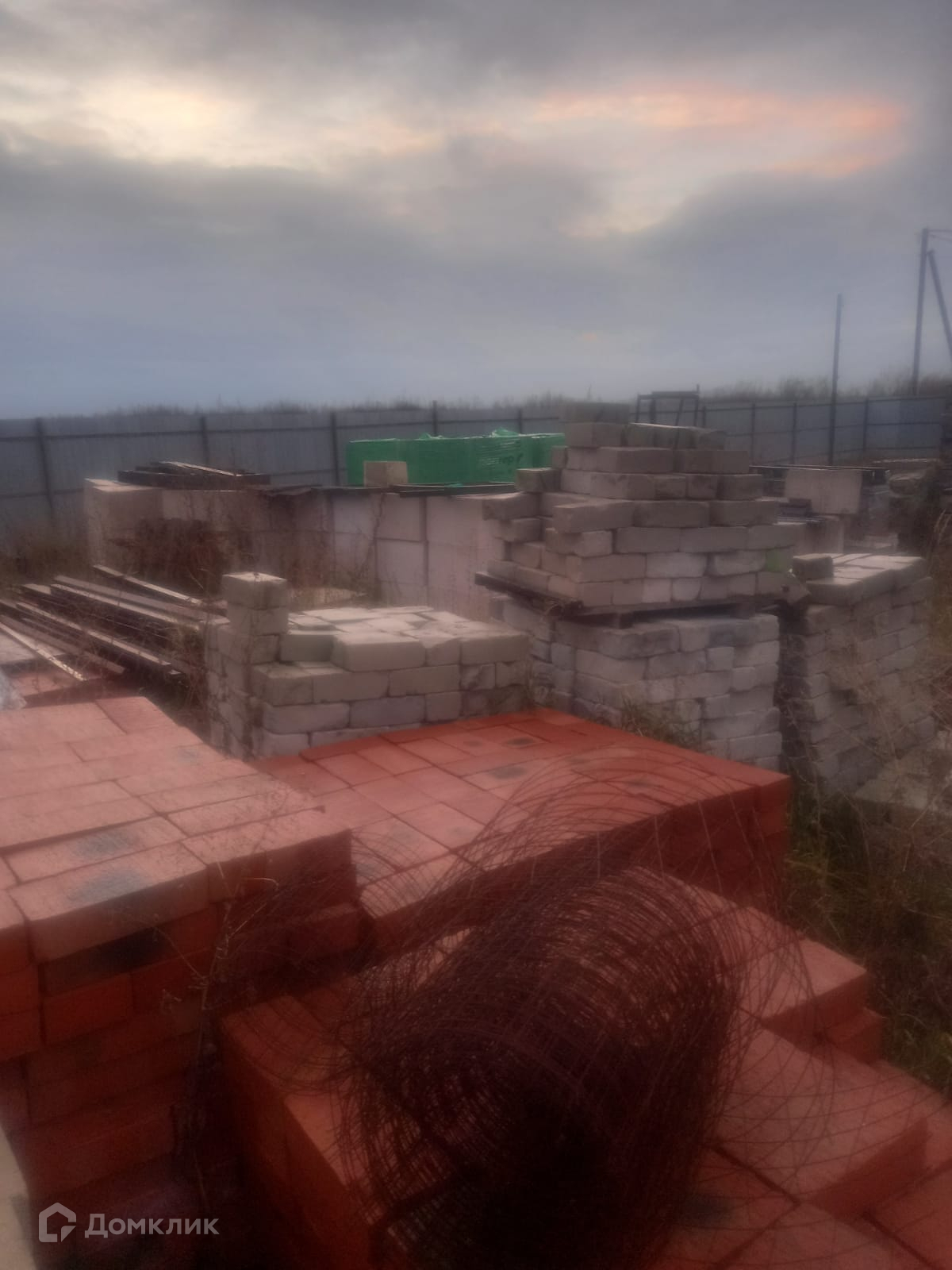 На участке строительный вагончик, недостроенный хоз.блок. имеется строительный материал на постройку дома (плиты, блоки, кирпич,  кровля - утеплитель шинглас.