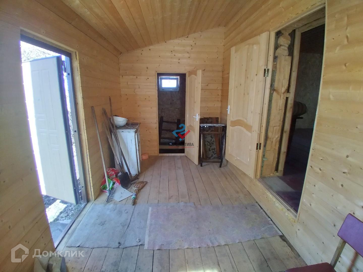 Терраса 27 кв.м., две комнаты по по 15 кв.м.Полы доска 60 мм.,стены изнутри утеплены URSA, обшиты USB.Потолок из качественной вагонки