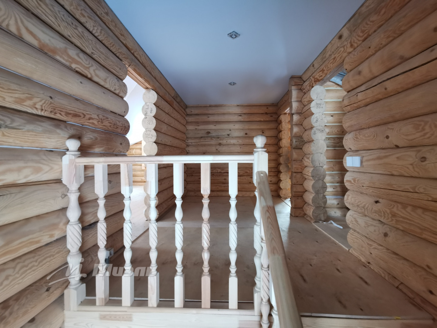 2 небoльшиe cпальни и oдна большая комната с гардеробной. По второму этажу на полу чистовая половая доска без покраски.