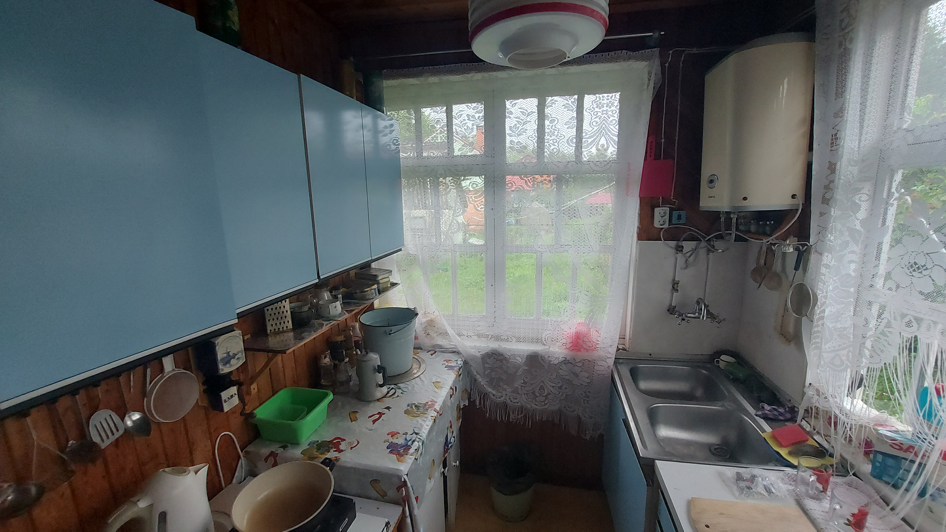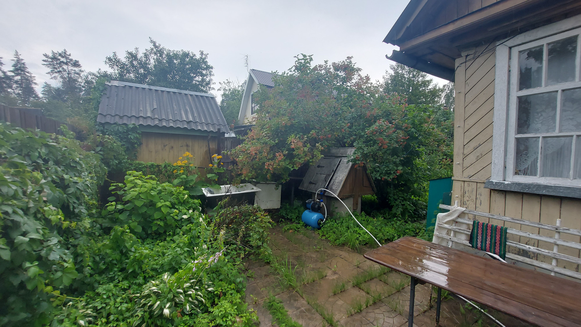 Вода - из колодца доведена до дома, до душа и уличной раковины.