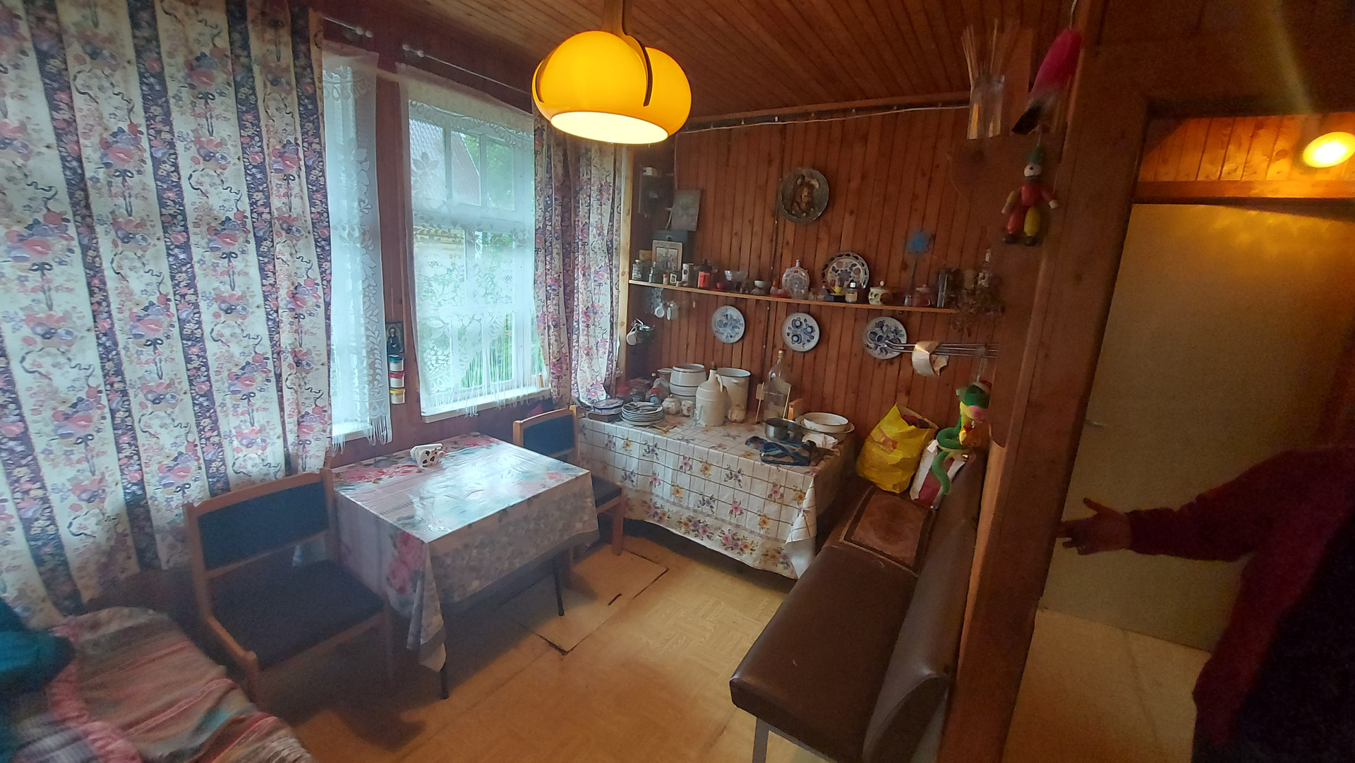 1 этаж: 3 изолированных комнаты,кухня с водопроводом и водонагревателем, газовой плитой (от баллона) или электроплиткой.