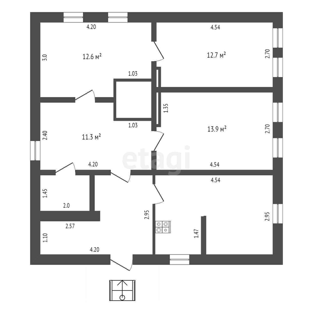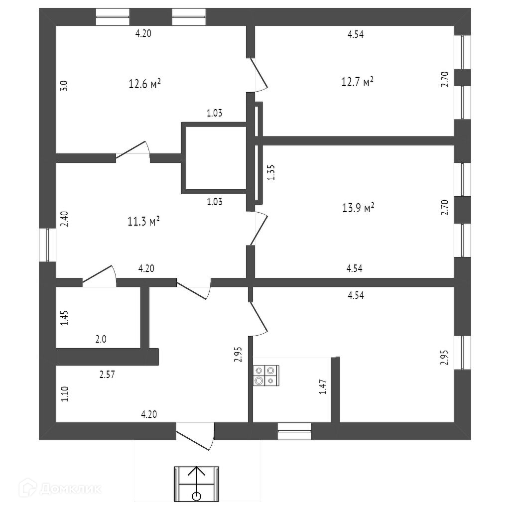 В доме 4 комнаты , кухня и кладовая. Полы — деревянные крепкие.
