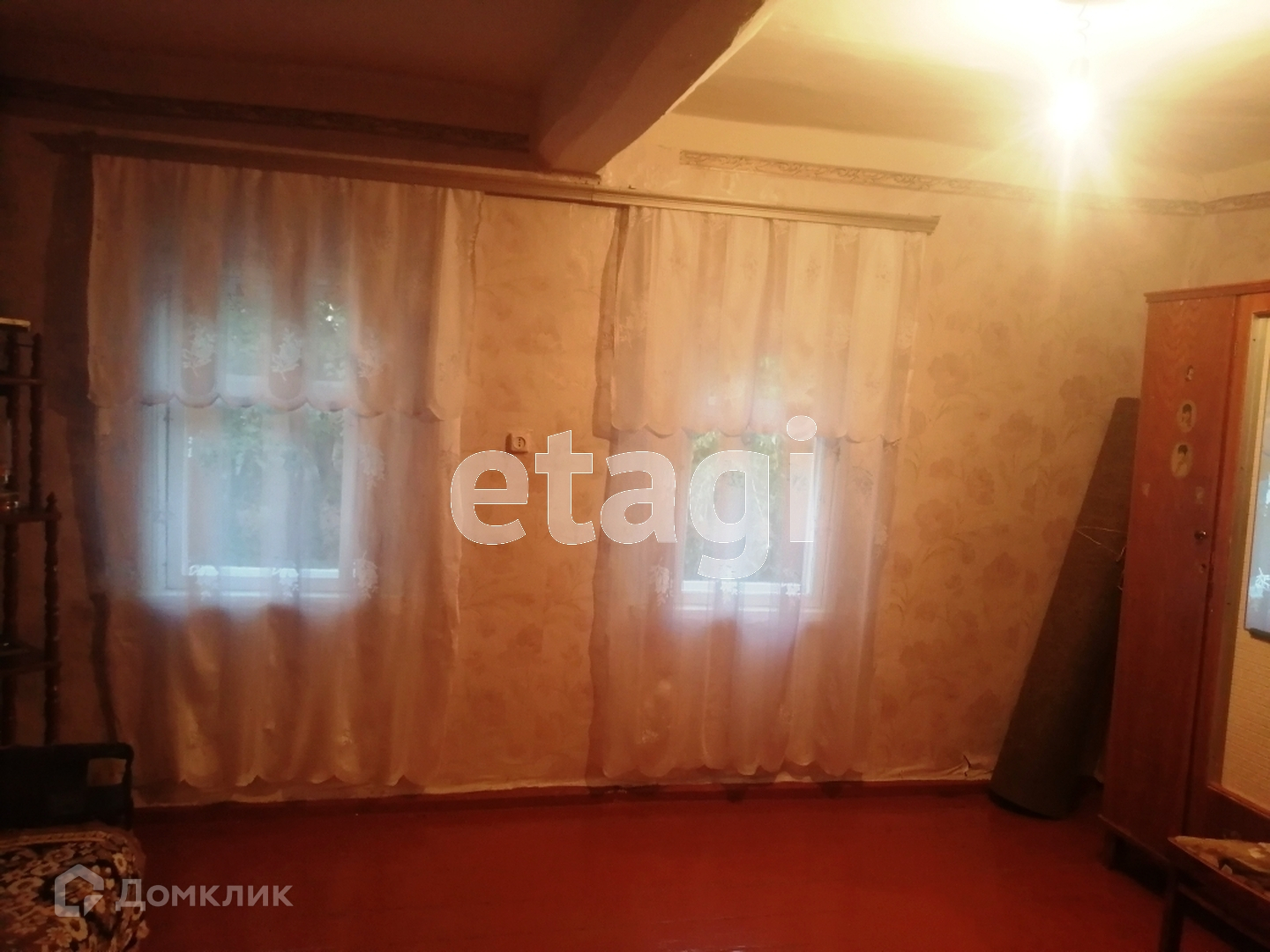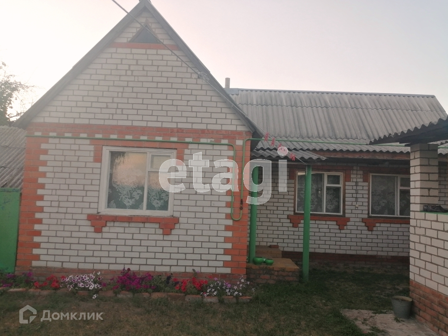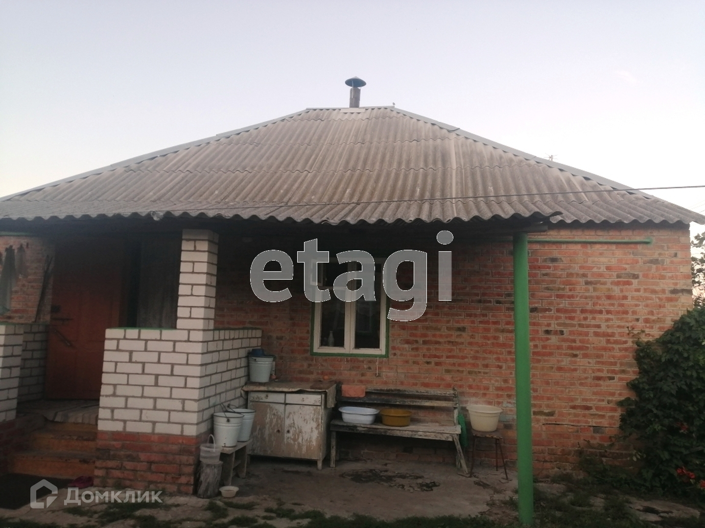 Дом общей площадью 50.5 кв.м. Материал стен — дуб. Обложен кирпичем. Дом сухой и теплый! Год постройки 1958. Материал — крыши — шифер. Окна — деревянные (не так давно их поменяли)