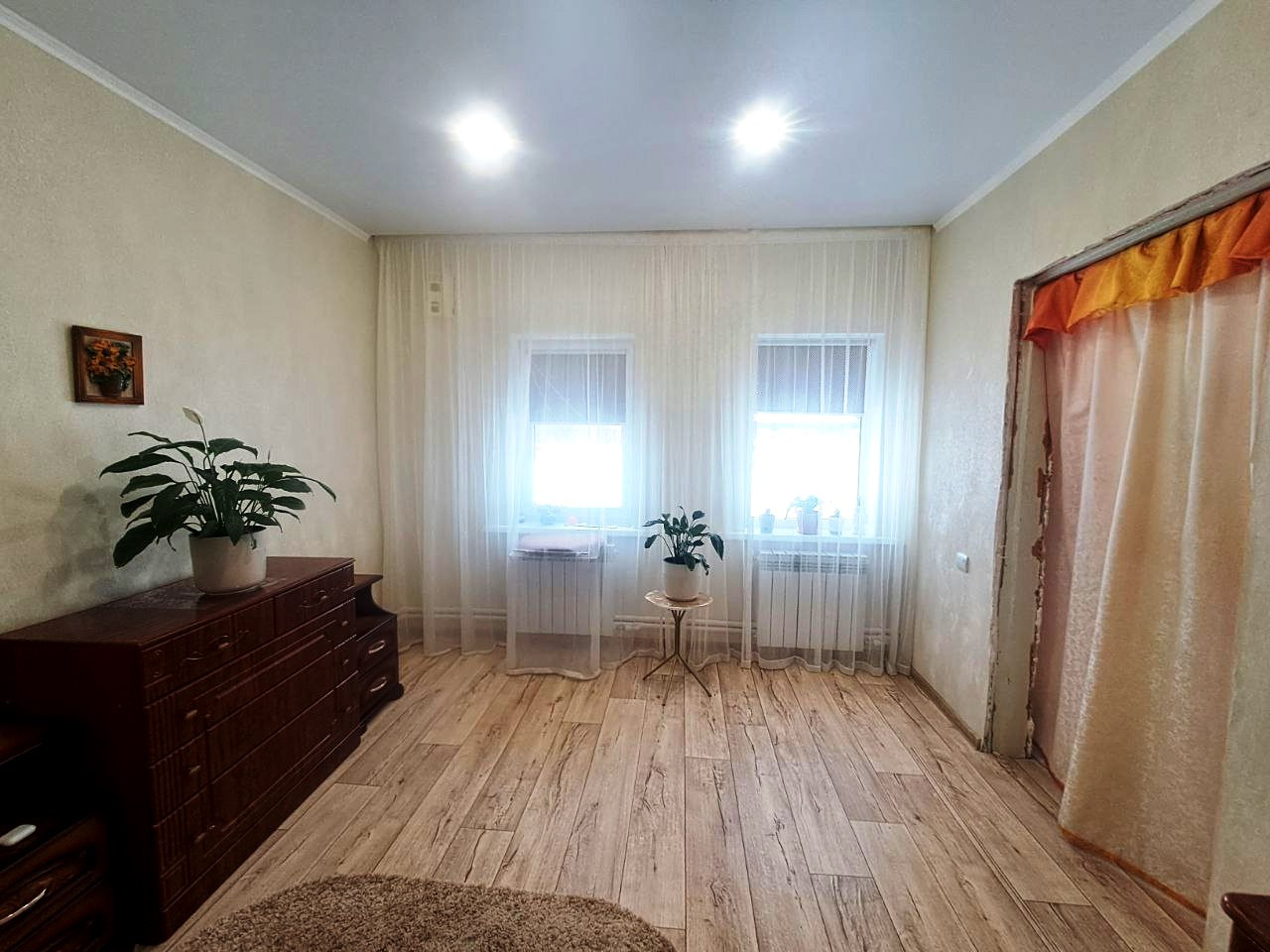 Продается дом в живописном месте Валуйского р-она Белгородской обл. с. Двулучное . Дом общей площадью 84 кв.м. Дом 1970 года постройки. В доме год назад сделан качественный капитальный ремонт: заменена вся электрическая проводка, установлены отдельные автоматы на каждую комнату, заменено отопление (установлены алюминевые радиаторы), водонагреватель - газовая колонка. Дом теплый. Материал дома бревно - обложен кирпичом. Крыша – металлическая, дверь входная с терморазрывом. Во всем доме установлены пластиковые стеклопакеты, с тройным остеклением. В доме 4 просторные комнаты (2 изолированные спальни), совмещенный санузел в кафеле, кухня, котельная. Расположение комнат смежно – изолированное. Высота потолков – 2.7 м., потолки частично натяжные. Полы – дубовые, крепкие, ОСБ (9мм) выровнены и застелен качественный линолеум. Отопление дома производиться с помощью котла фирмы Лемокс. Водонагреватель – газовая колонка, в доме и в флигере.