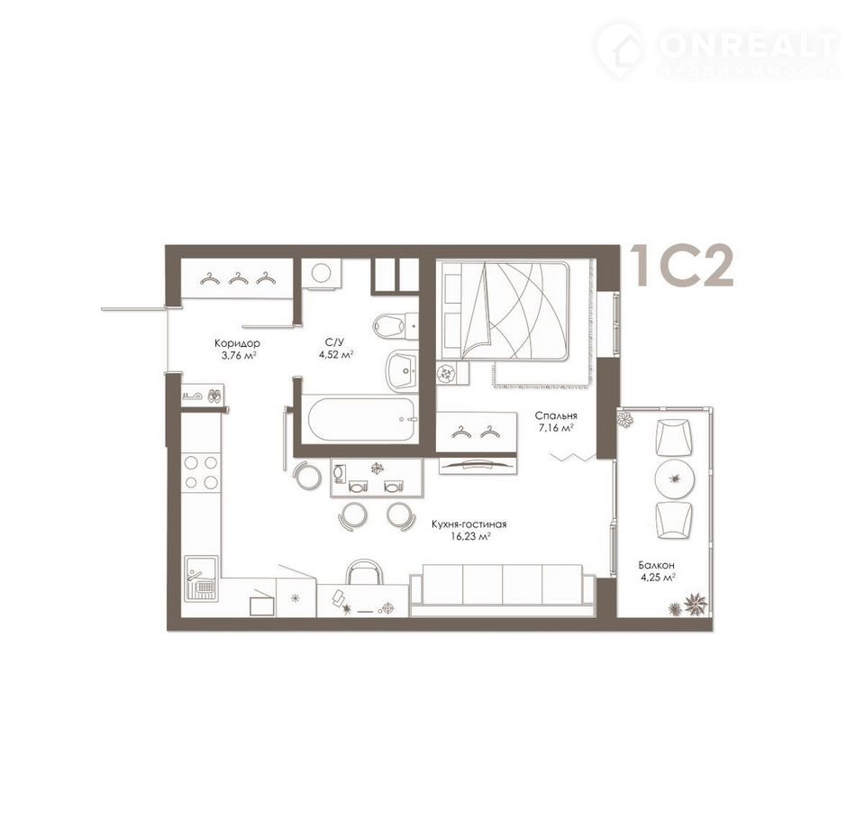 Общая площадь 33 м2
