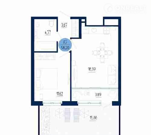 Общая площадь 58.2 м2
