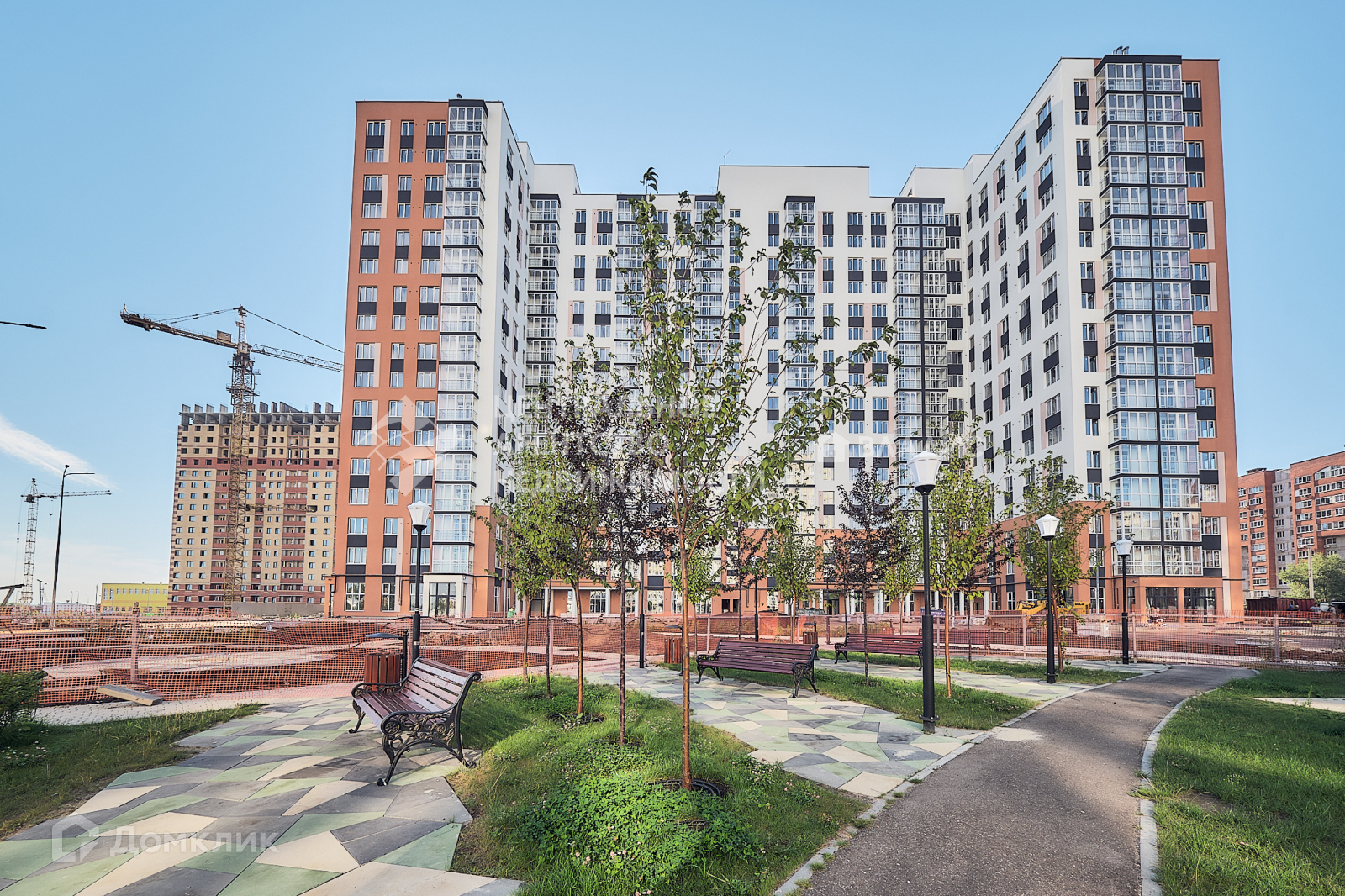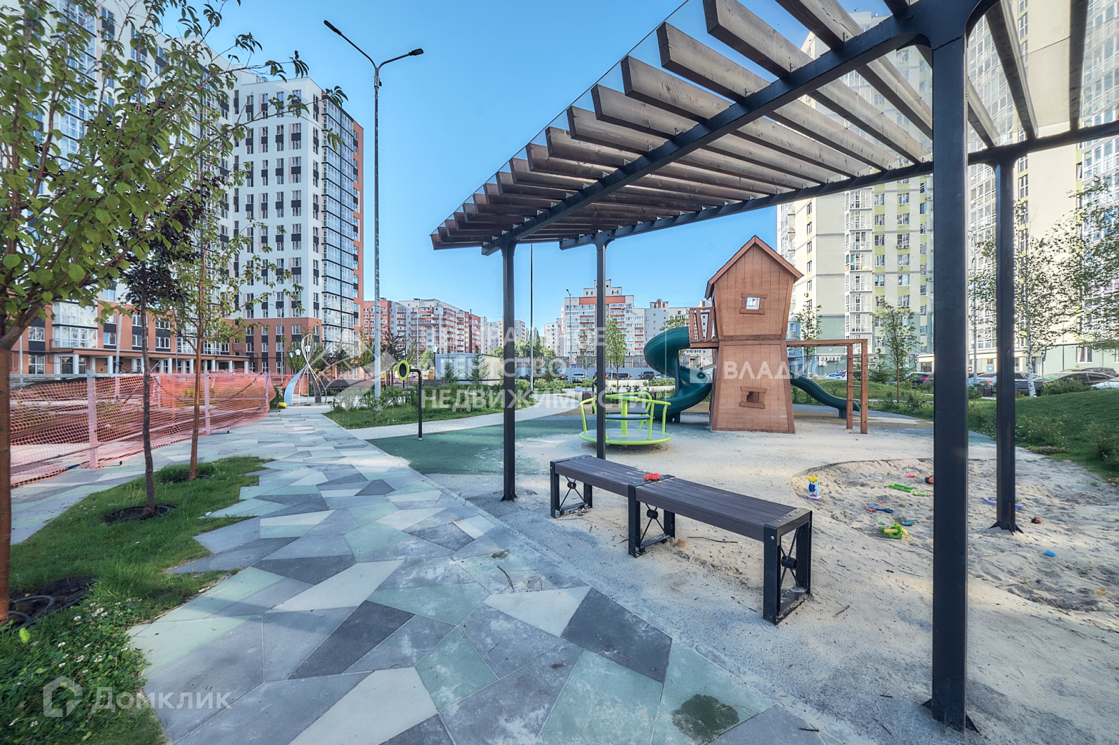 На  территории  много  зелени, красивые парковые зоны, скамеечки, фонари, несколько детских площадок.