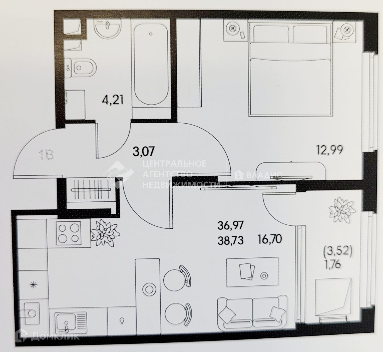 Общая площадь 39 м2