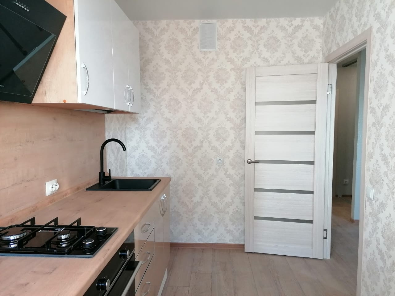 В квартире сделан новый  ремонт , окна ПВХ, застекленный балкон, индивидуальное отопление (котел встроен в рабочую зону), встроенный кухонный гарнитур, натяжные потолки, на полу ламинат, санузел совмещен в плитке.