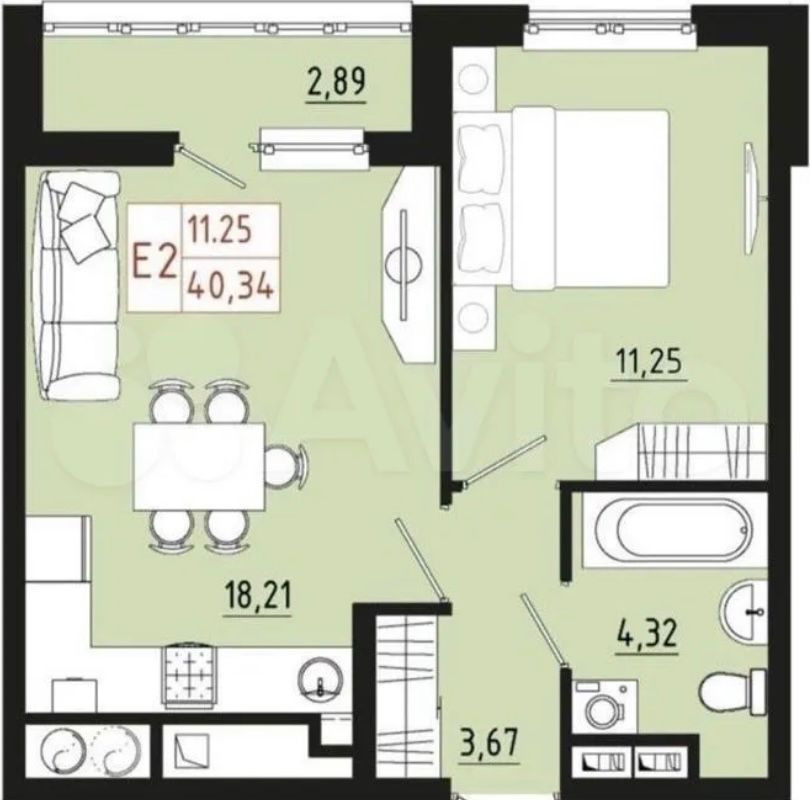 Общая площадь 42 м2