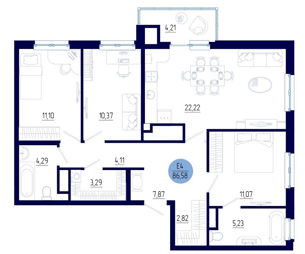 Общая площадь 87 м2