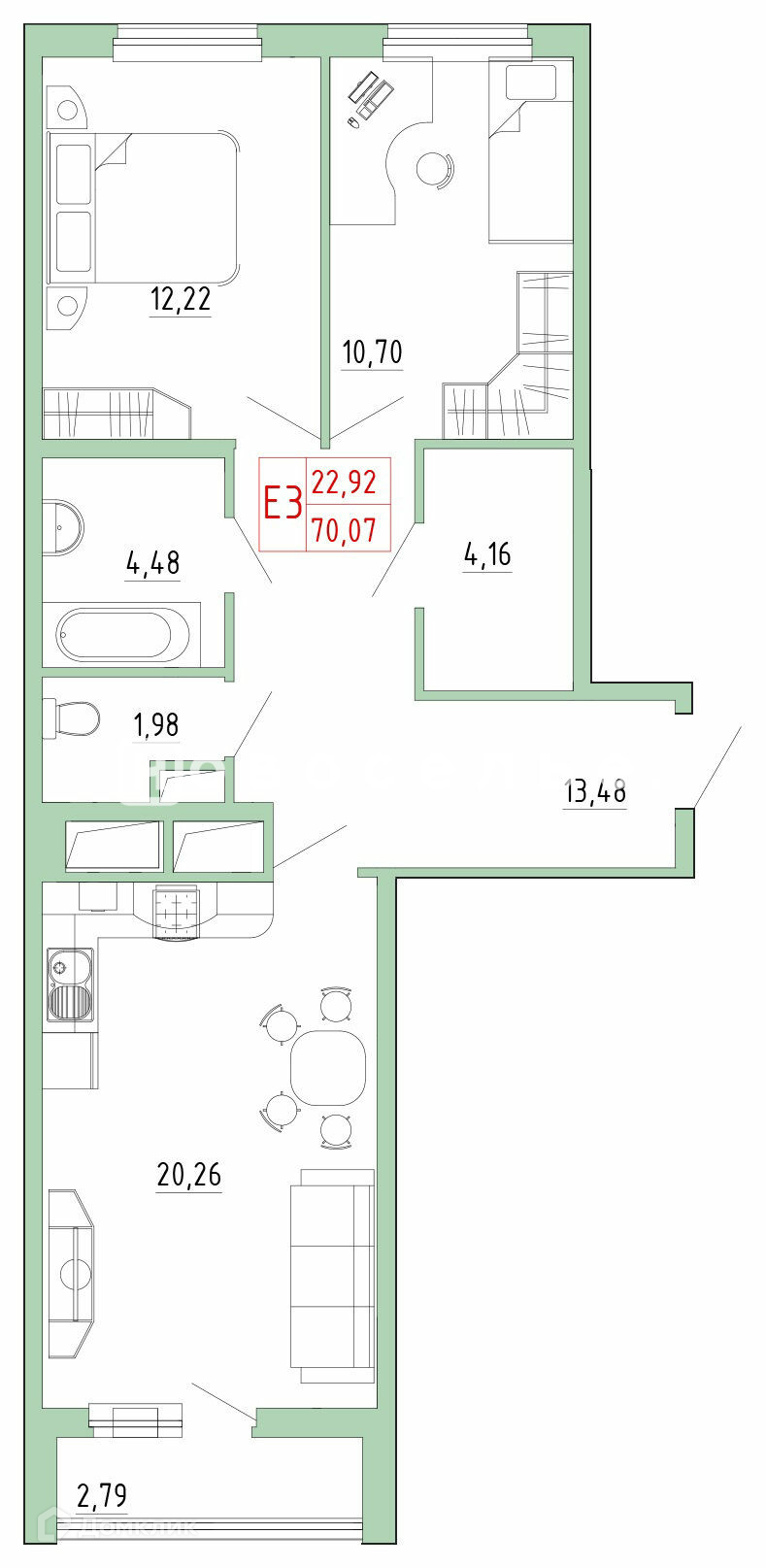 Общая площадь 70.07 м2