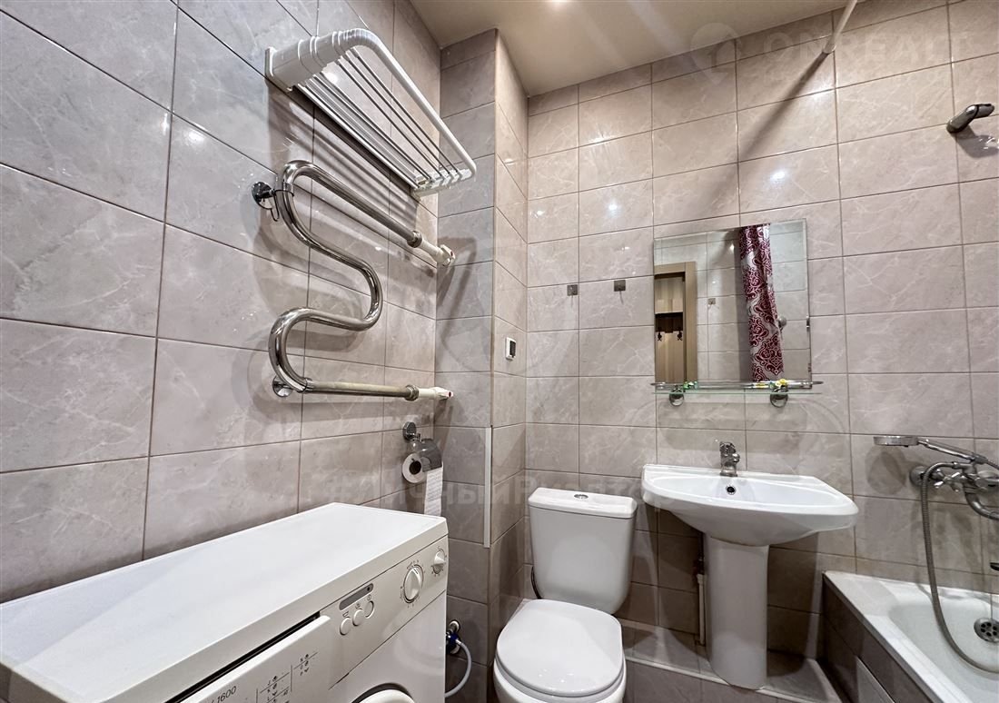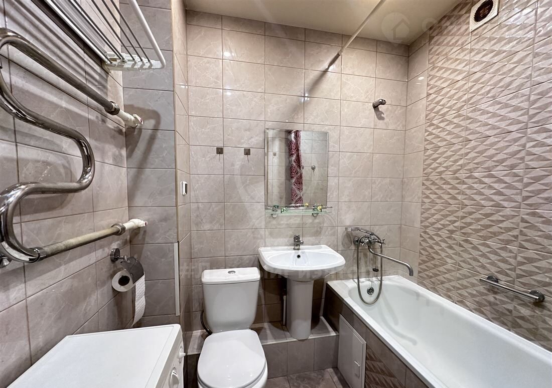 САНУЗЕЛ совмещенный с большой ванной. Здесь же разместилась "домашняя помощница" - стиральная машинка.