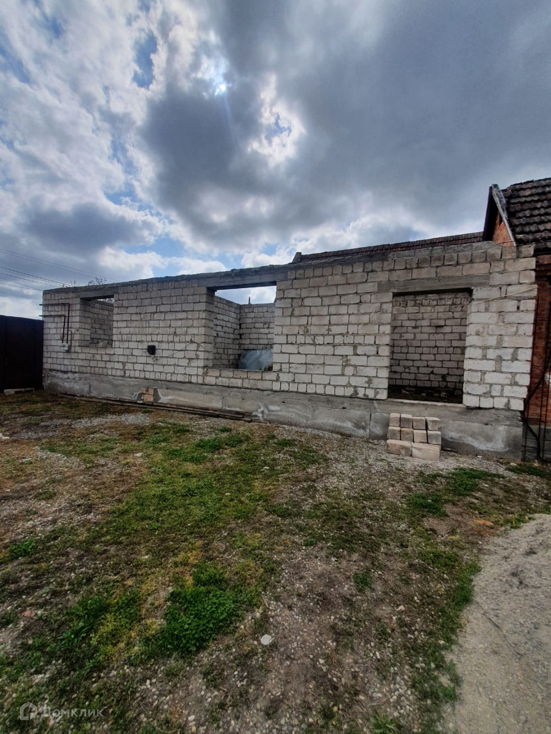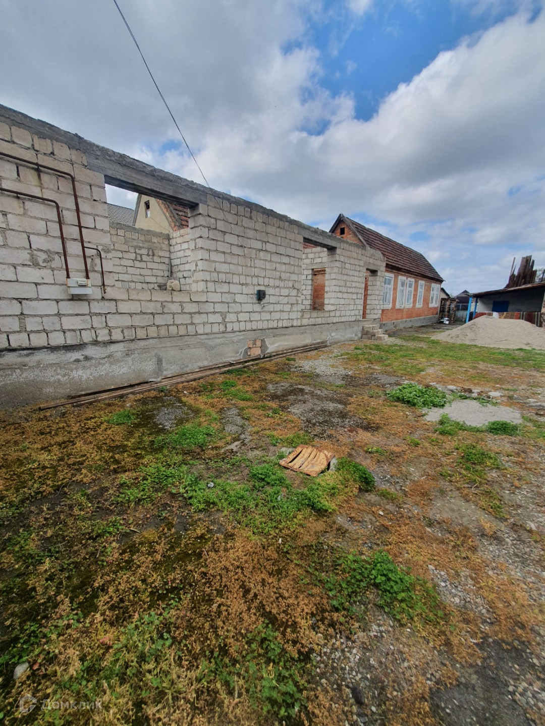 Рядом стоит недостроенный блочный дом, из двух комнат и прихожей.