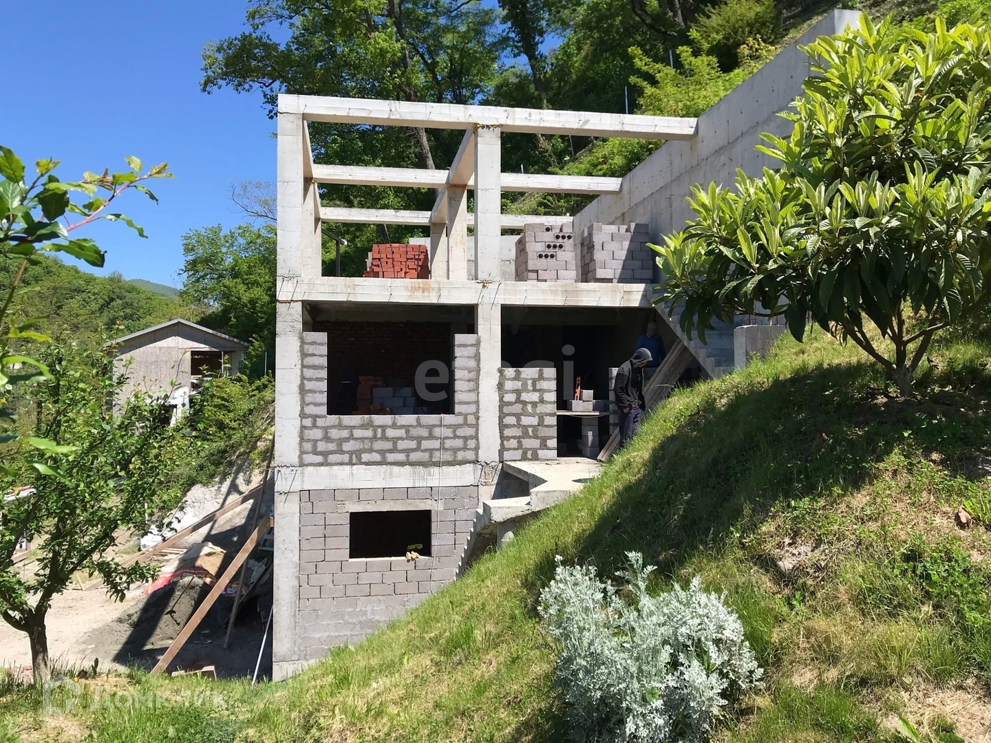К Вашему вниманию представляется строящийся дом в 3х уровнях на участке 23 сотки. Дом выполнен из монолита, залита подушка. Общая площадь данного объекта составляет 200кв.м. На участке находится плодоносящий сад из множества видов деревьев. Дорога асфальтирована. Расстояние до моря 300 м. С участка открывается красивейший вид на горное ущелье и черноморское побережье.
