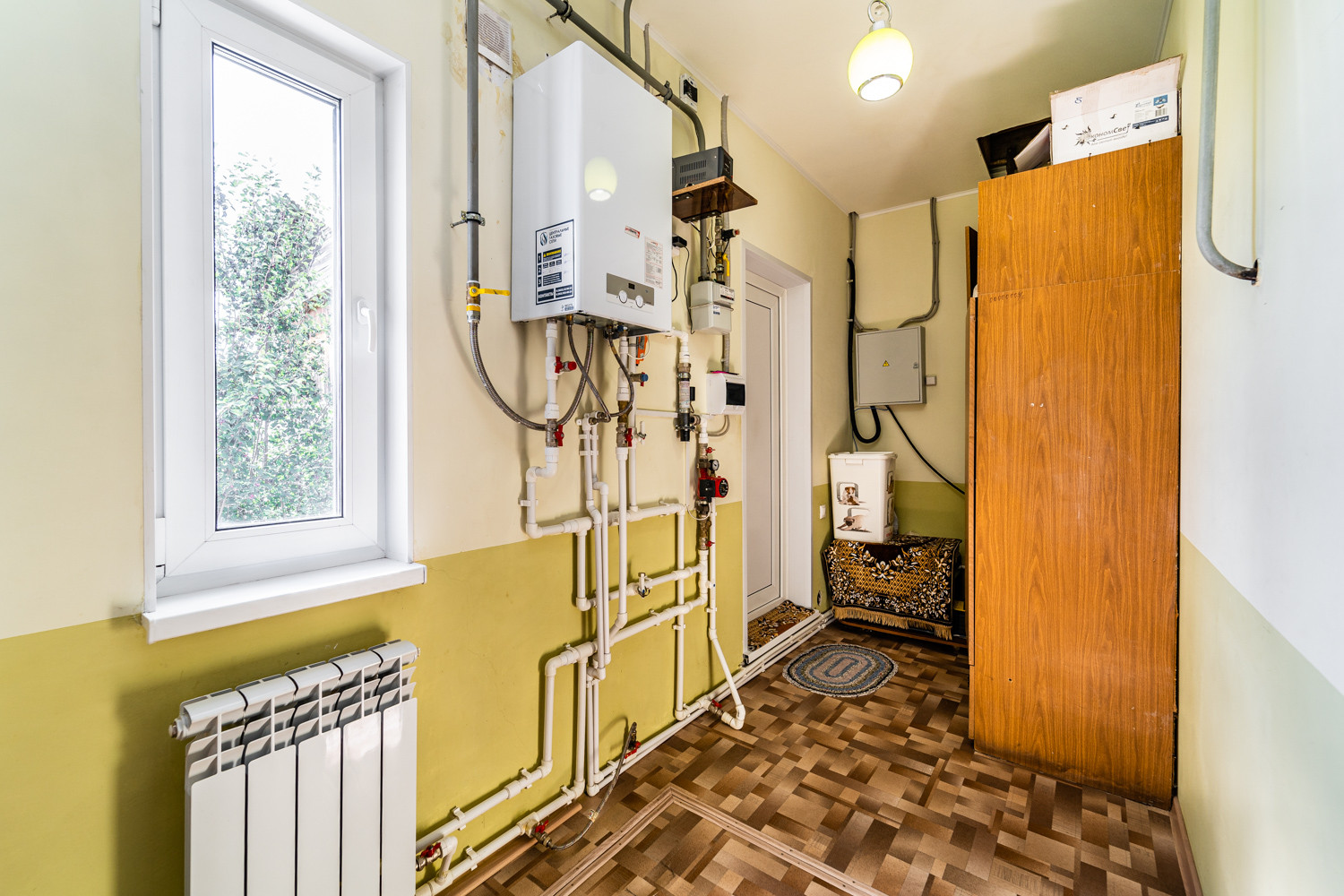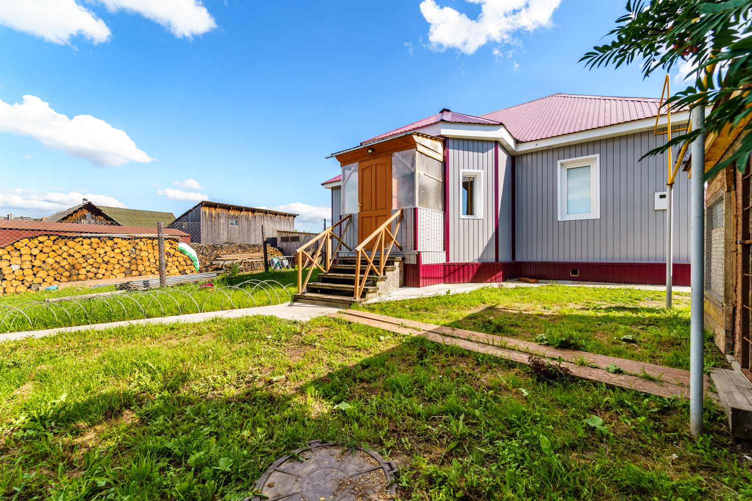 Продам дом в селе Дзержинское. Фундамент-ж/бетонный, ленточный размер: наружные стены-0.5*0.7 м*h внутренние стены- 0.4*0.7м*h Армирование-пространственный каркас из арматуры. Цоколь-кирпичный, высота 0.4 м Подполье-2.5*2, 5*2, 1h Стены наружные-брус 180*180 мм внутренние-брус 150*180 мм Перегородки-ГВЛ толщиной 100 мм Наружняя отделка-утеплитель 50 мм сайдинг Lбрус металлический Отопление-газовый котел 24 Квт электрический котел 5-Квт Эл/снабжение-мощность 15 Квт-3 фазы Водоснабжение центральное Канализация -септик V-5м* Имеются надворные постройки: гараж металлический, баня, погреб, сарай. Участок разработан, земля плодородная. Развитая инфраструктура, рядом школа, сад, остановка общественного транспорта.
