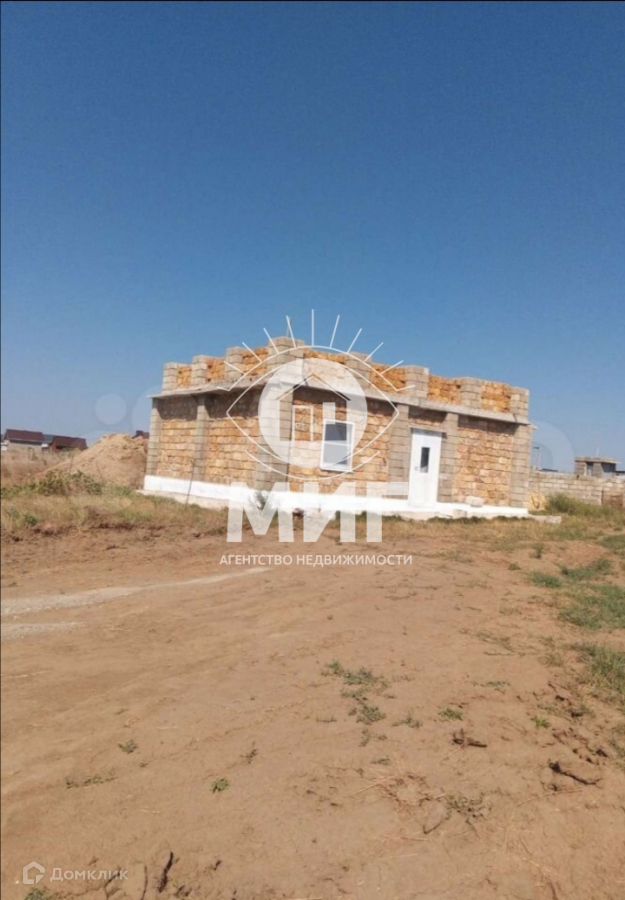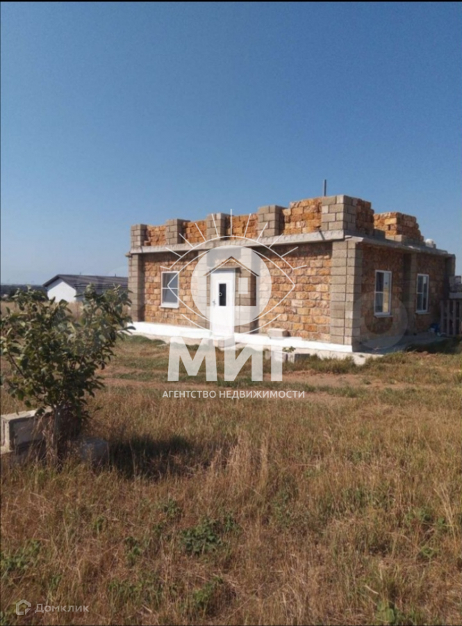 - крымский ракушечник. Очень полезен для здоровья, в его составе есть  морская соль и йод. В доме особый микроклимат, лечение во время сна. Дом общей площадью 65 кв метров состоит из гостиной, совмещенной с кухней, двух спален, коридора и санузла. На крыше уложены заводские плиты перекрытия. Можно построить второй этаж, откуда откроется красивый вид на горы и море. На участке установлен уличный туалет, начато строительство хоз. помещения. Газ, водопровод проходит вдоль участка. На участке 10 соток есть саженцы грецкого ореха, хурмы, абрикоса, персика, яблони, груши, сливы, фундука, инжира. Расположение в живописной местности. Рядом виноградники, ореховые рощи, поля дыни и арбуза. Есть места для рыбалки, охоты, ведения пасики. Инфраструктура села оформлена. До города и моря 20  км, без проблем можно доехать на маршрутке.