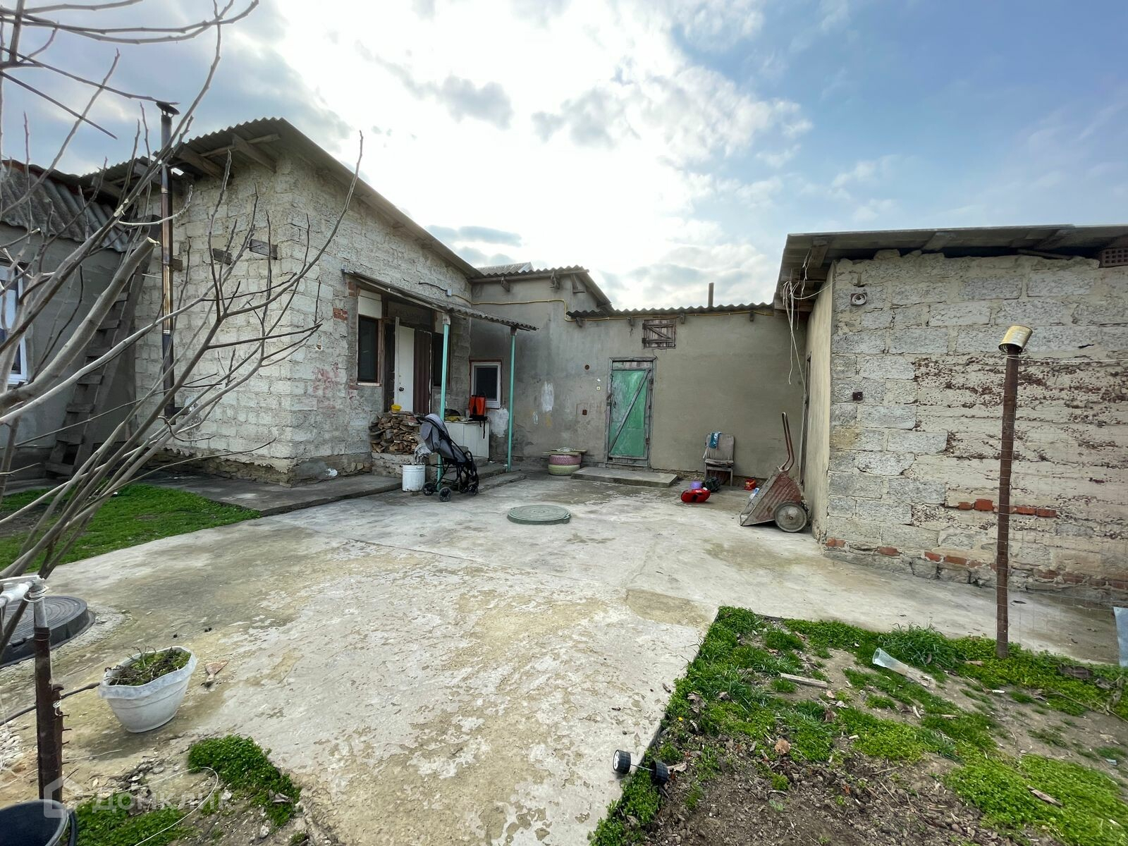 Недвижимость расположена на участке в 15 соток, имеет фасад 24 метра. В доме есть свет и вода, газ заведен в дом.