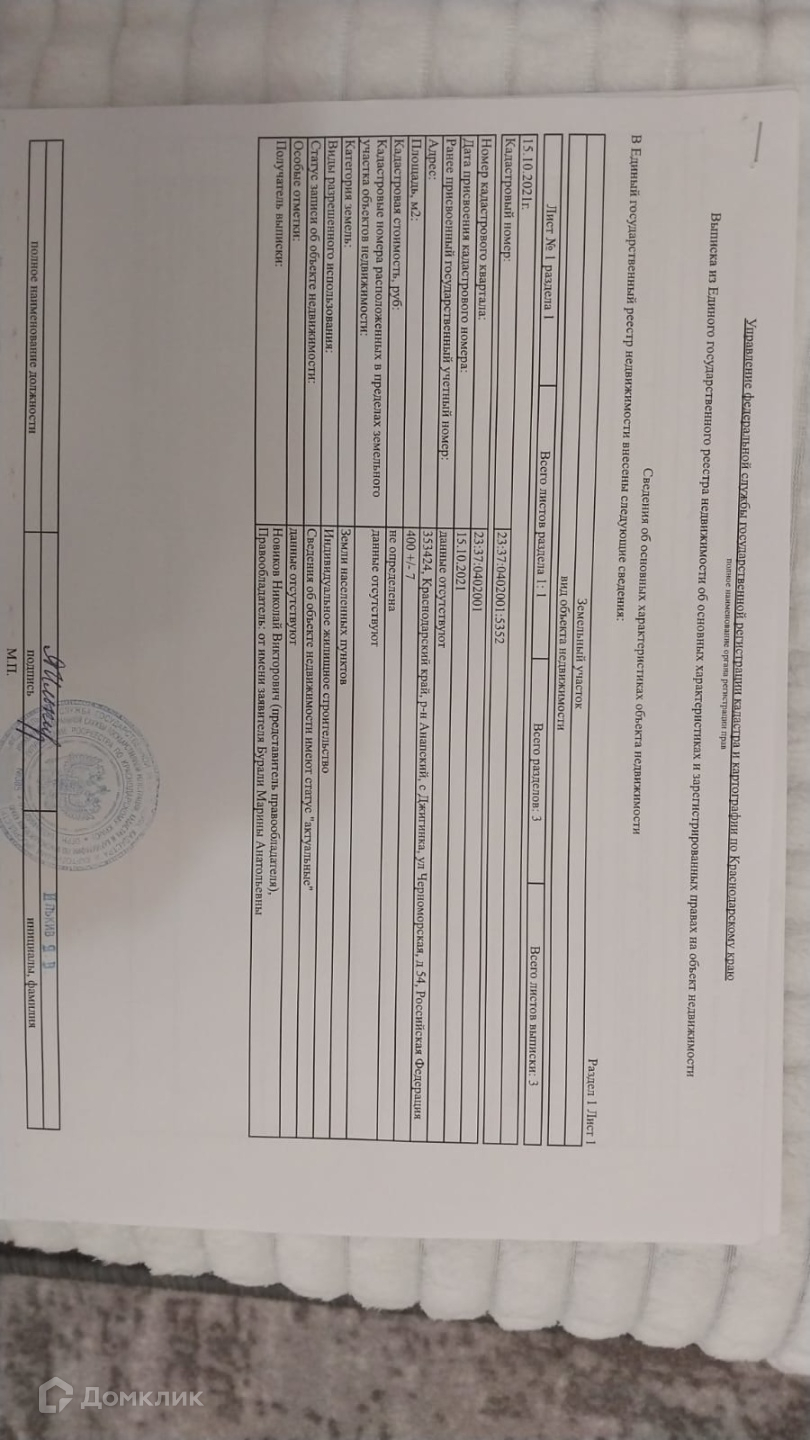 Продается земельный участок в п. Джигинка по ул. Черноморская 54.