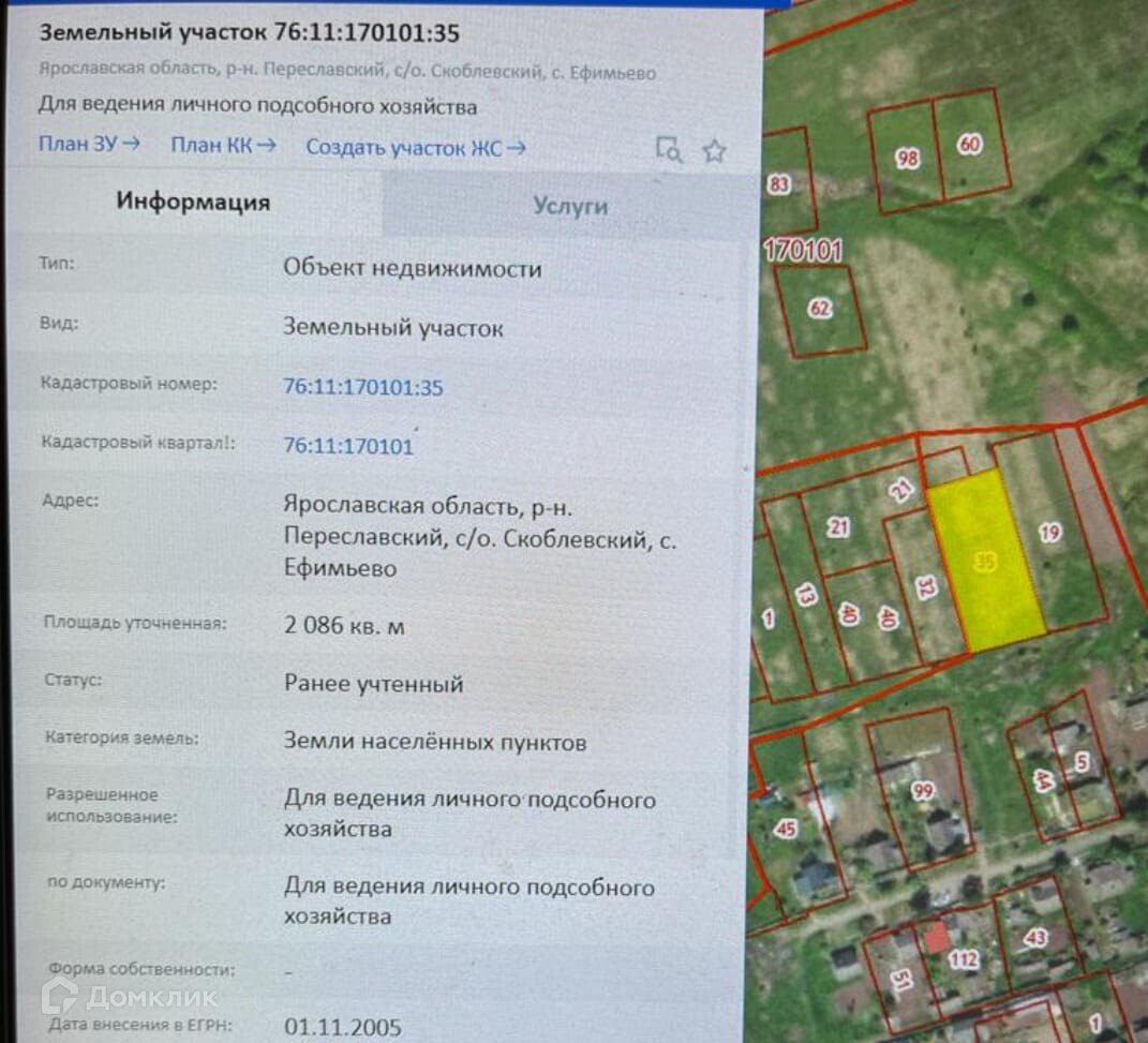 Участок под ИЖС, 20.86 сот. на продажу в селе Ефимьево