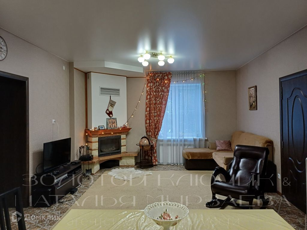 В гостиной находится функционирующий дровяной камин, что создает дополнительный уют.