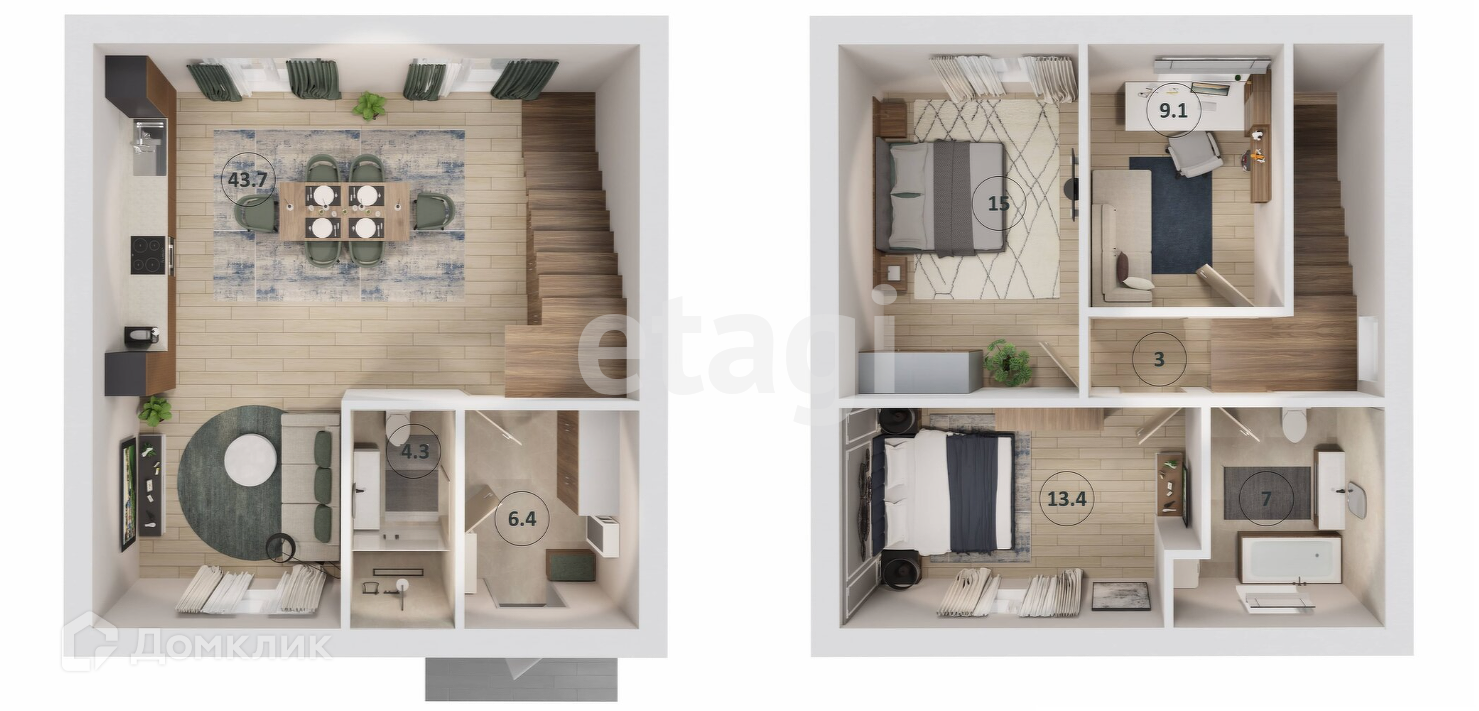 На первом этаже вас встретит светлая гостиная с панорамными окнами, просторная кухня-столовая, удобный кабинет, постирочная и санузел. Второй этаж включает три просторные спальни, каждая из которых оборудована собственной ванной комнатой. Также на втором этаже предусмотрена хозяйская зона с выходом на личную террасу. При строительстве дома использованы только качественные материалы и передовые инженерные системы, что обеспечивает надежность, долговечность и энергоэффективность.
