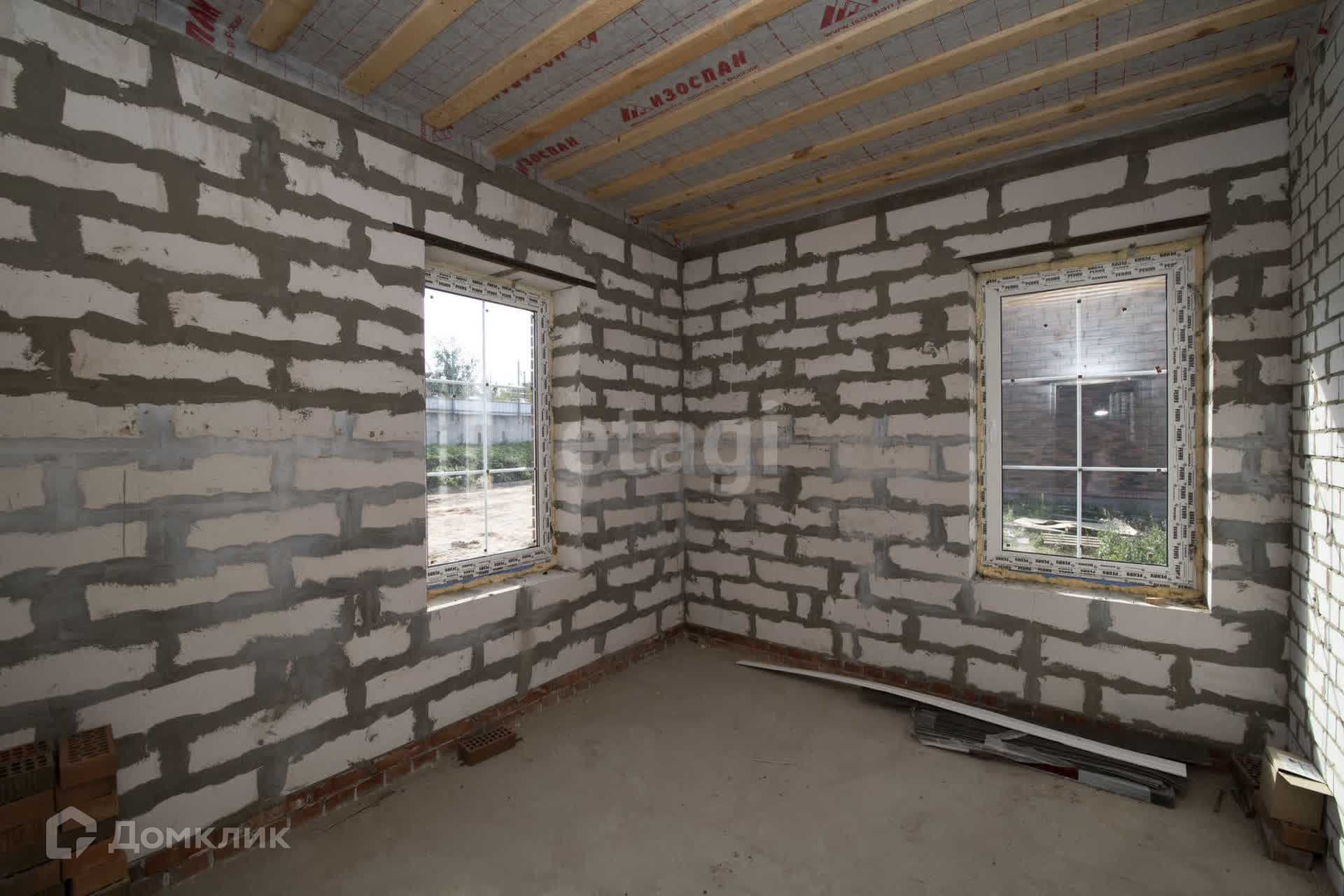 Внутренняя отделка выполнена в черновом варианте. В дом заведен электрический кабель, вода – скважина/септик, газ – проходит по улице до участка