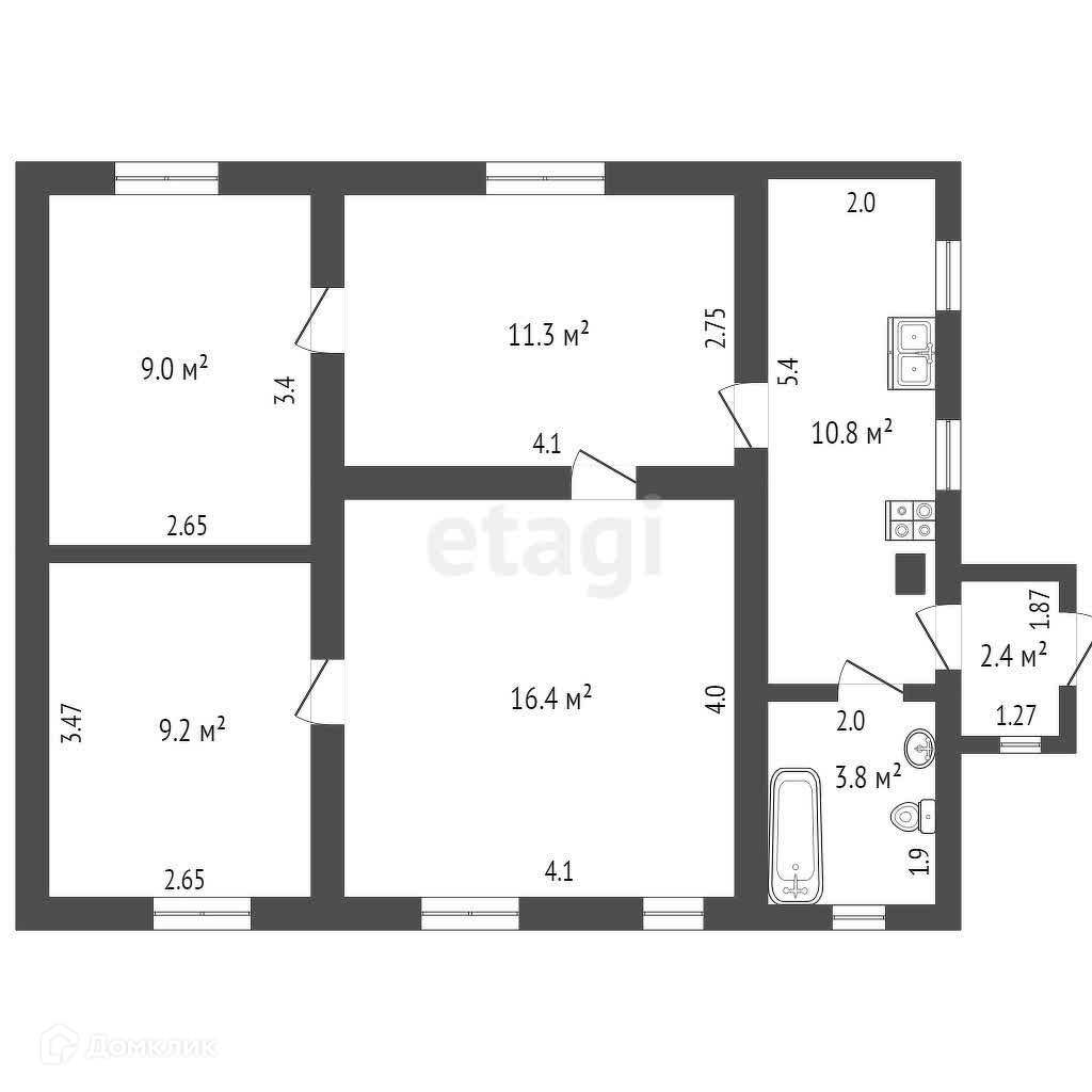 Общая площадь 63 м2
