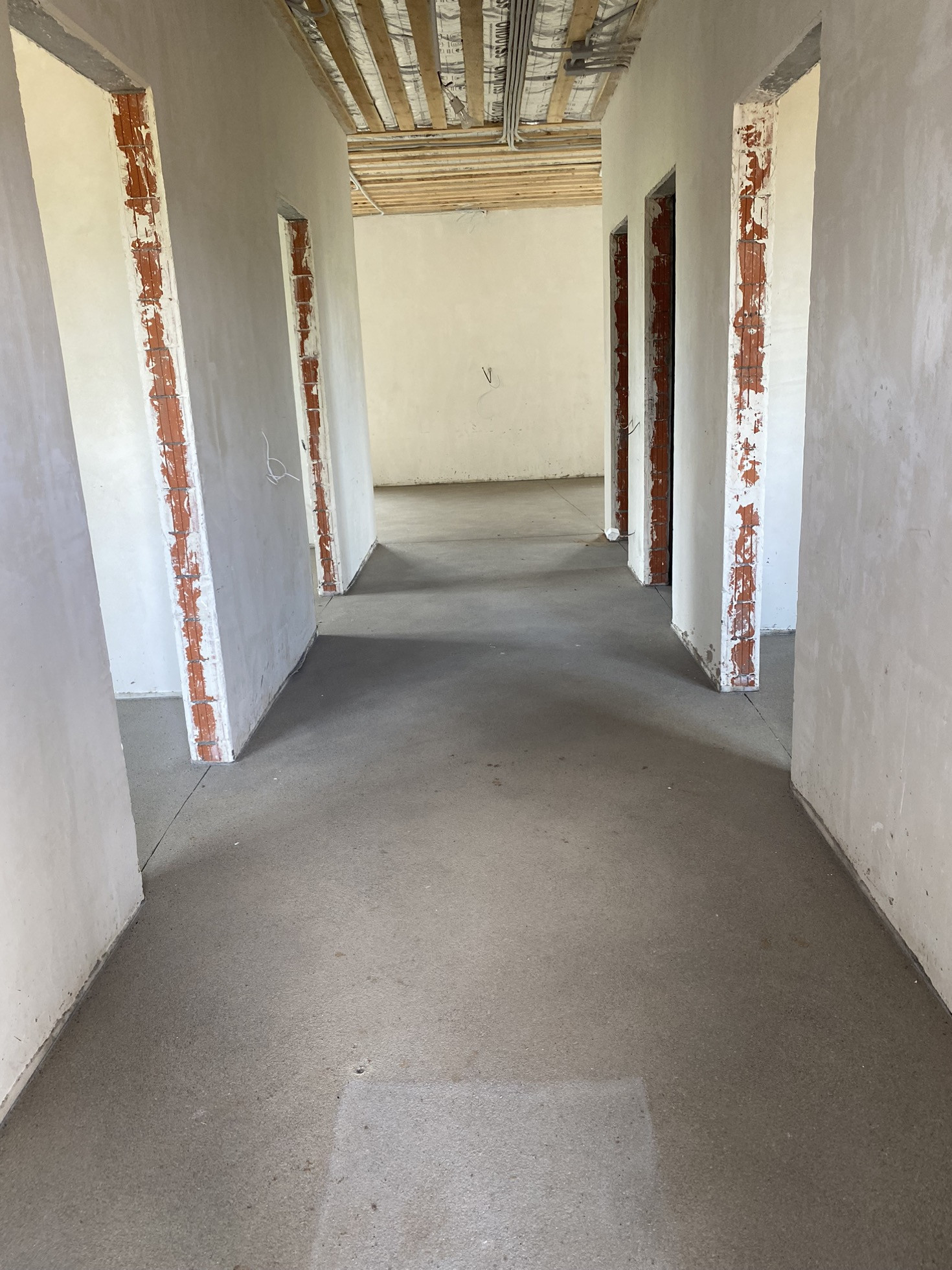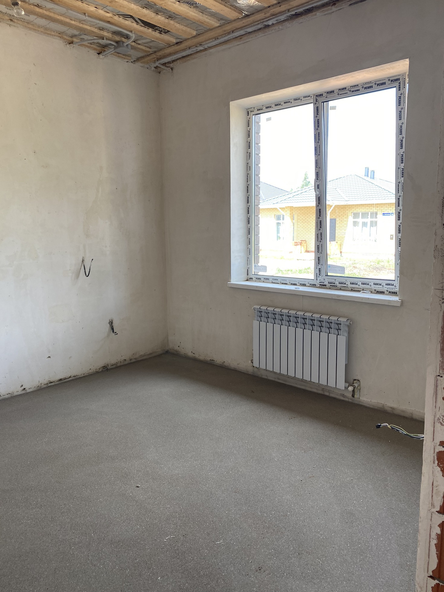 Дом в предчистовой отделке, стены отштукатурены, теплые полы по всему дому, батареи, двухконтурный котел, электрика и сантехническое оборудование по дому разведены.