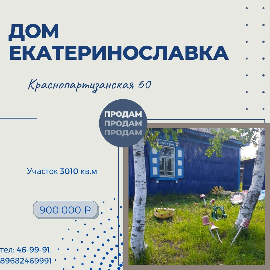 Продается бревенчатый дом 36 кв. м с участком 3010 кв. м в центре с. Екатеринославка в самом живописном месте!