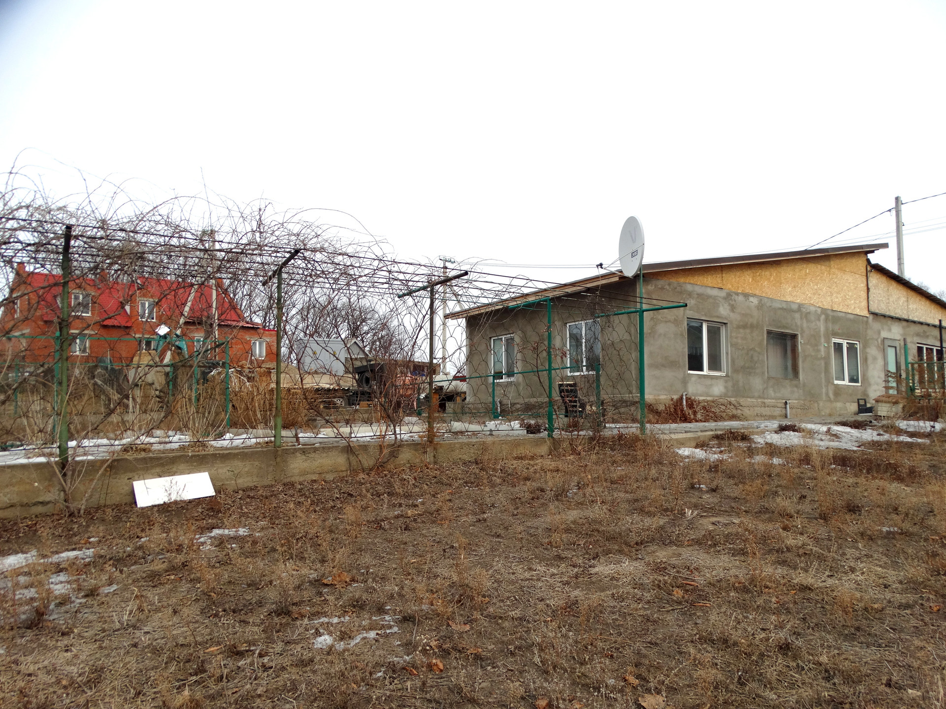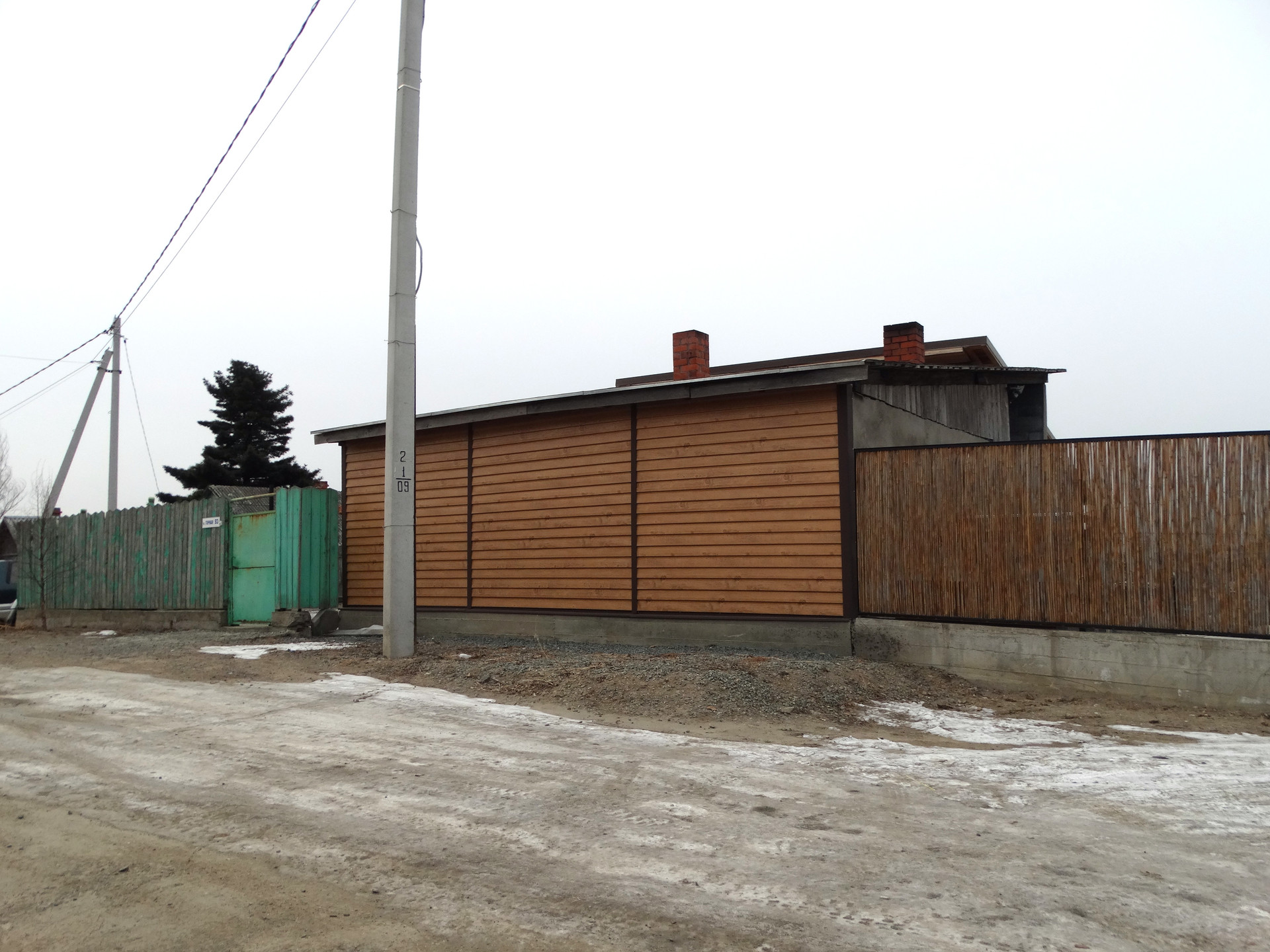 Дом огорожен забором.