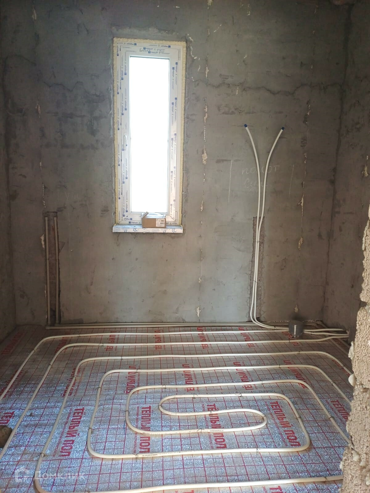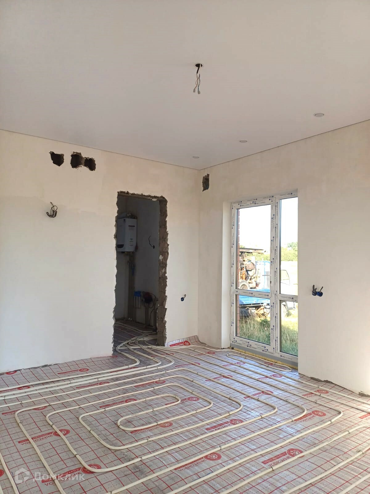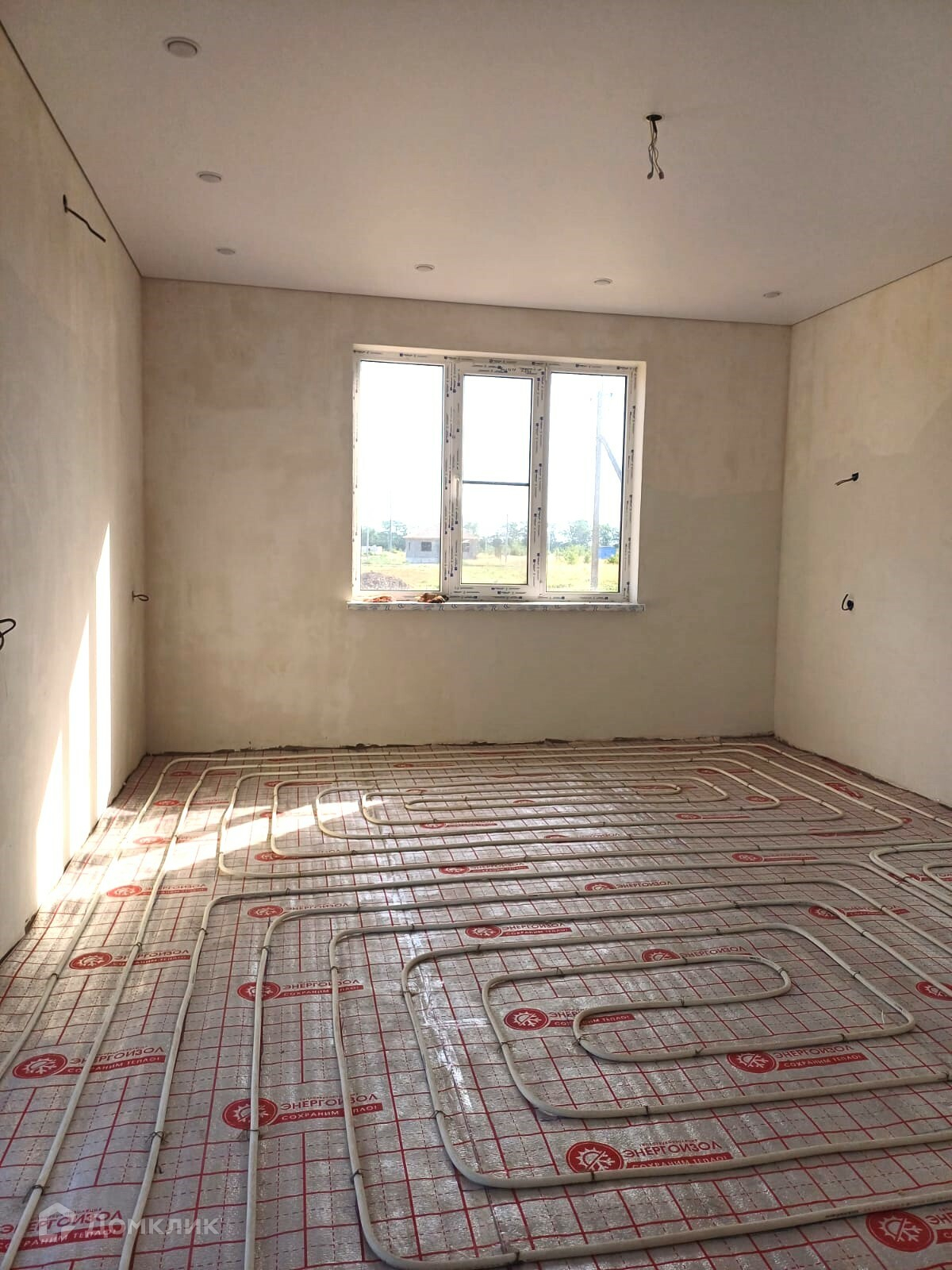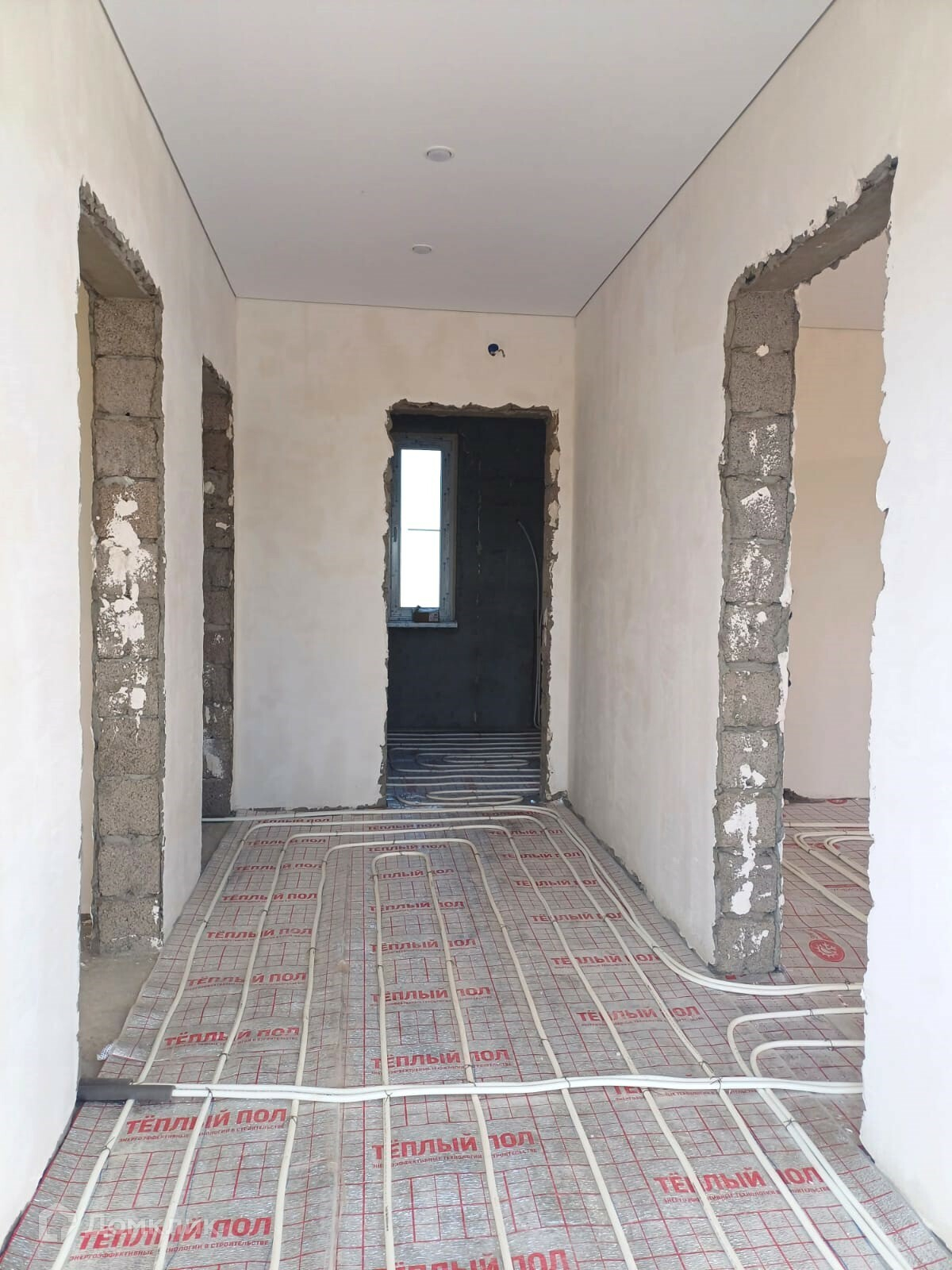Внутренняя отделка: стены подготовлены под обои, по всему дому проведена электрика, отопление — тёплый пол, крыша утеплена, потолок натяжной.
