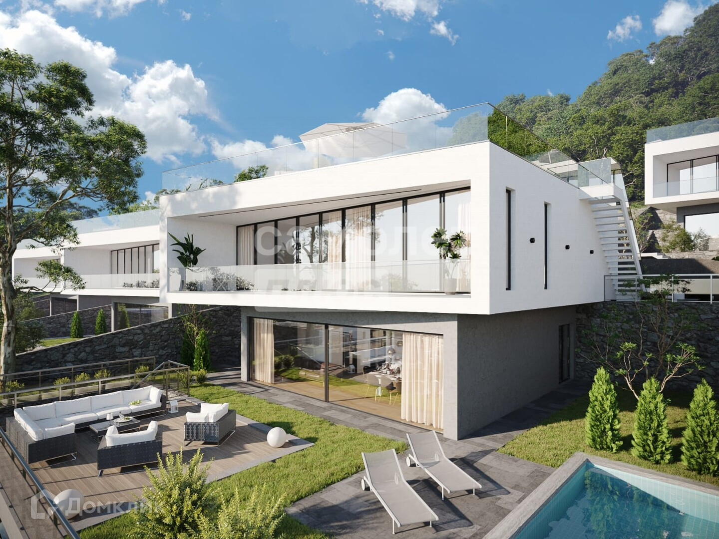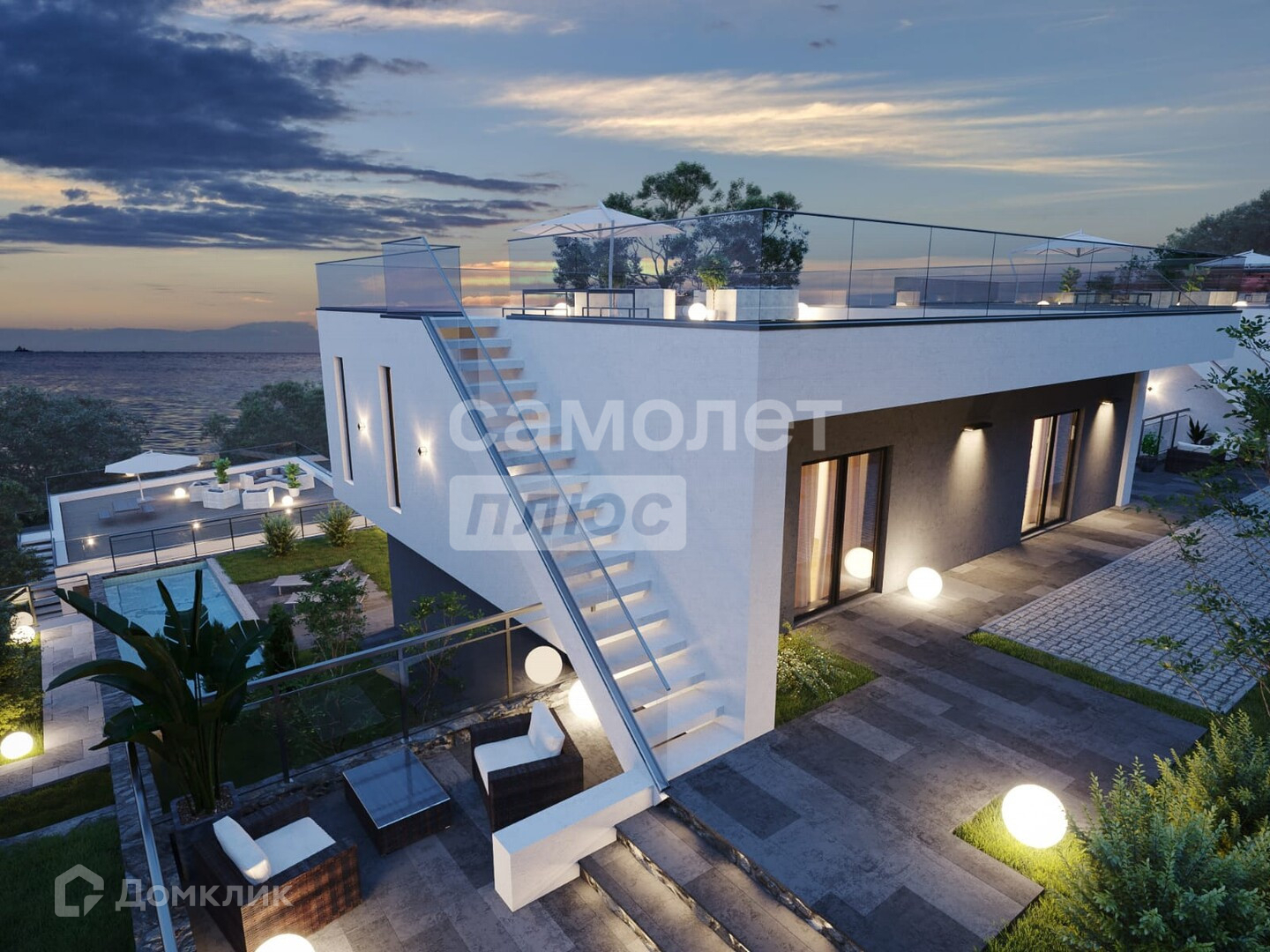 В его составе красивая вилла, которые объединена единым архитектурным ансамблем, а также невероятно шикарным видом на бескрайнее Черное море и объекты Олимпийского наследия.Вилла располагает эксплуатируемой кровлей,,где собственники смогут оборудовать полноценную зону для отдыха и принятия солнечных ванн.