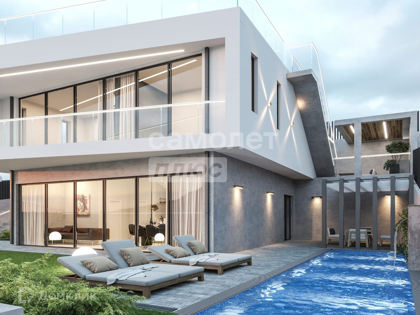 Площадь земельного участка 4 сотки. На территории располагаются индивидуальные Инфинити бассейны с переливом и подогревом, а ландшафтный дизайн подчеркивает эстетику архитектурного решения в стиле хай-тек, стекло отражает солнечные лучи и цвет неба.Все коммуникации центральные.Отдельное преимущество поселка заключается в очень удобном расположении.