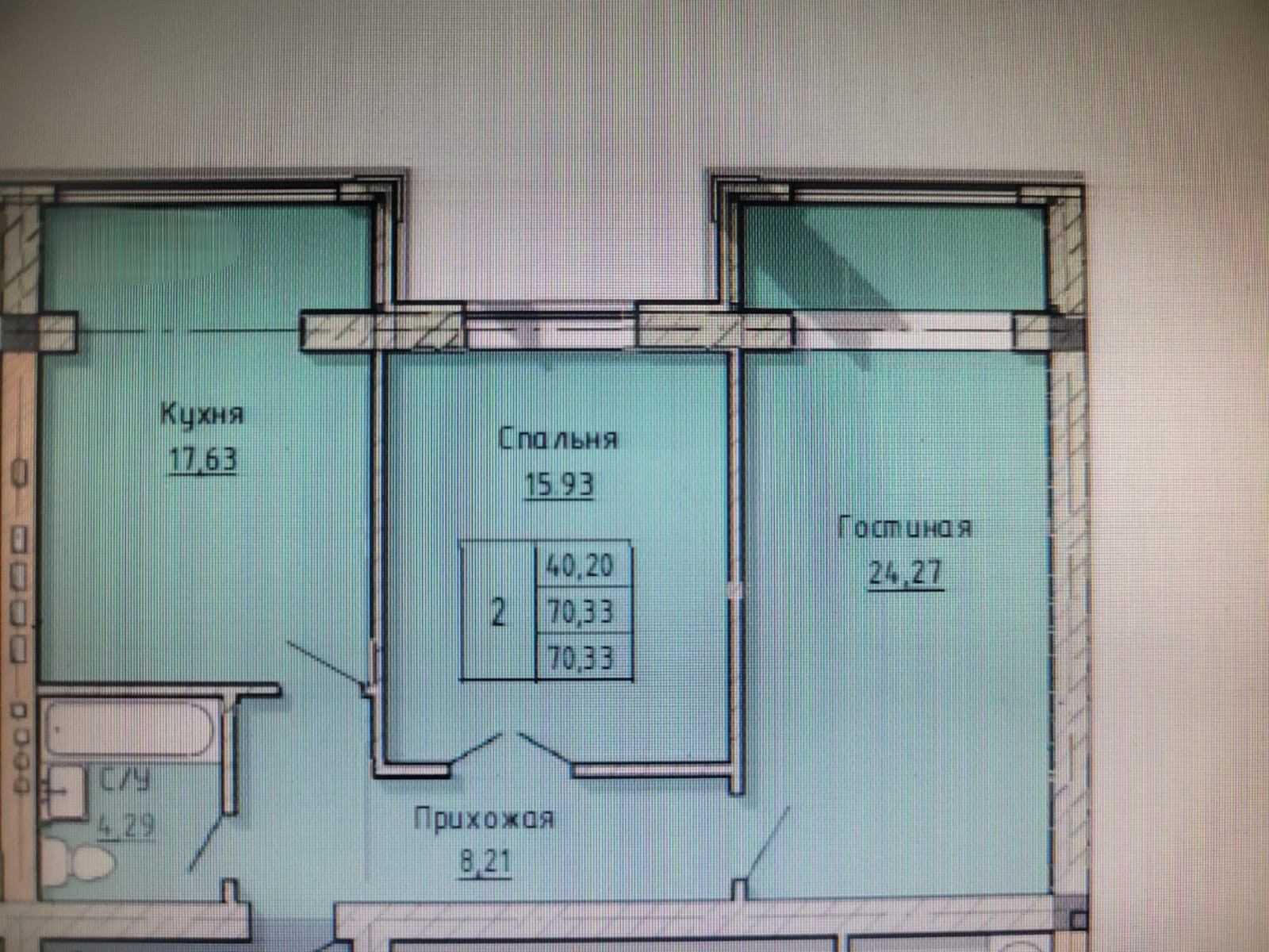 Общая площадь 70.3 м2