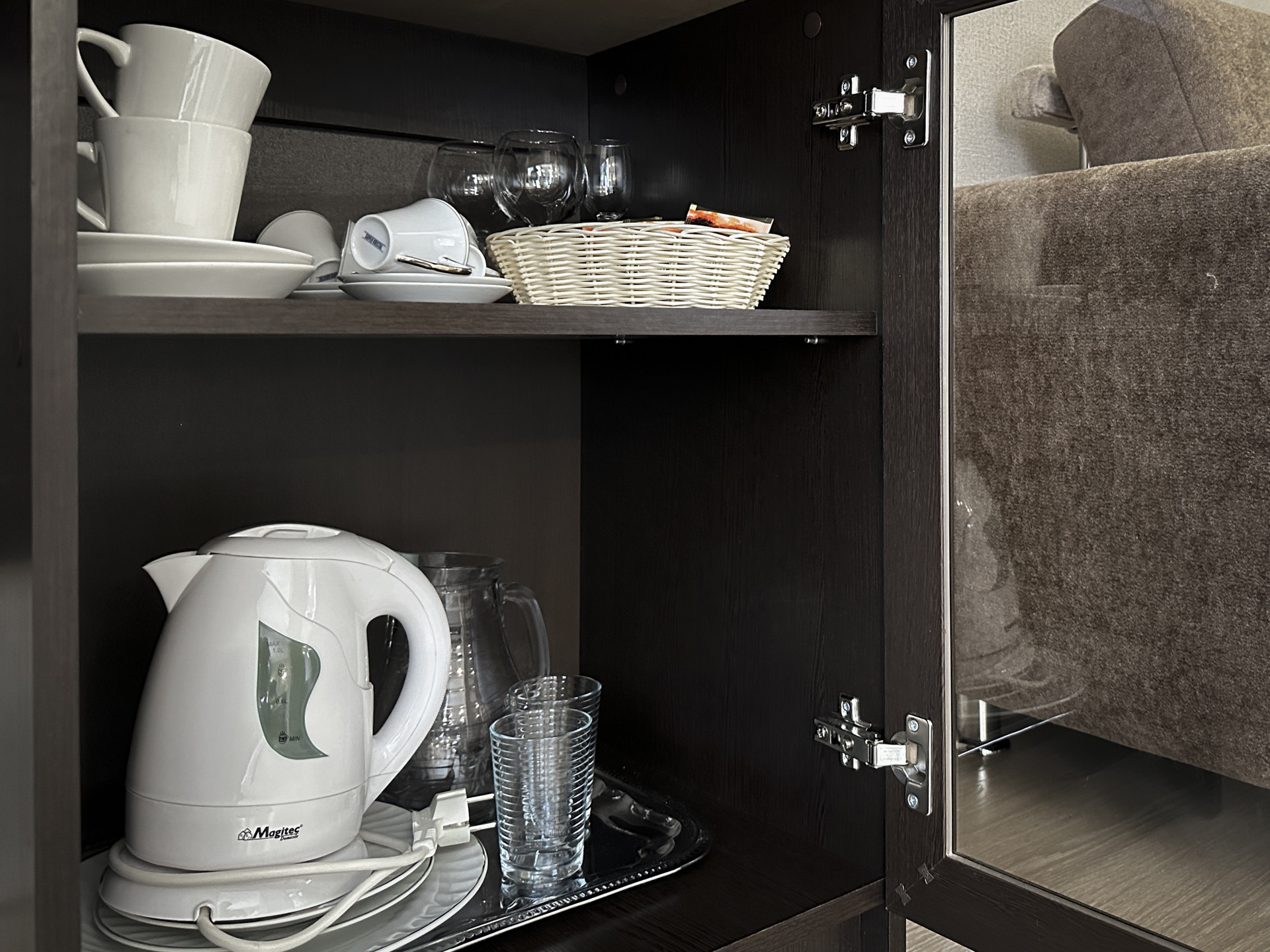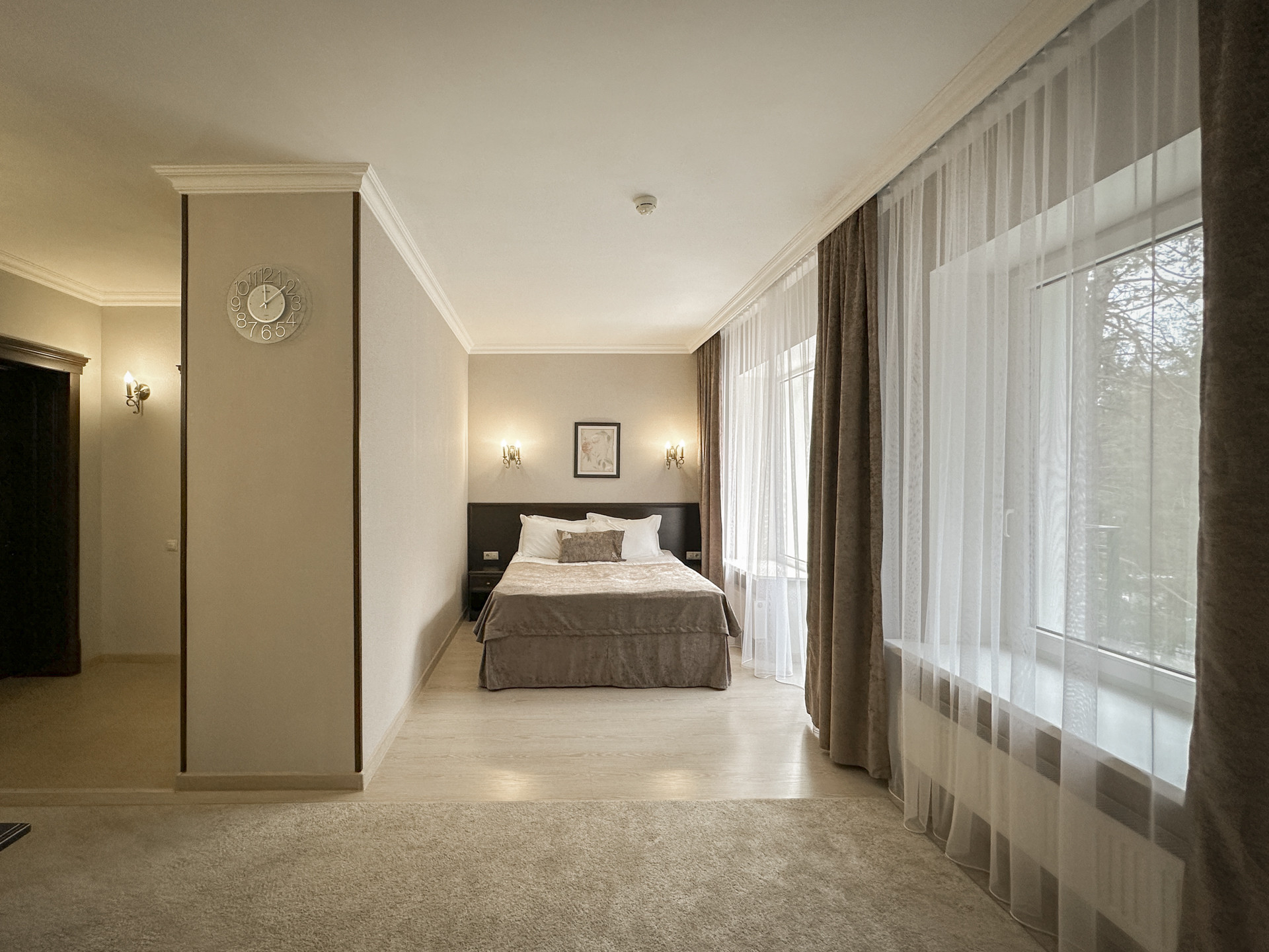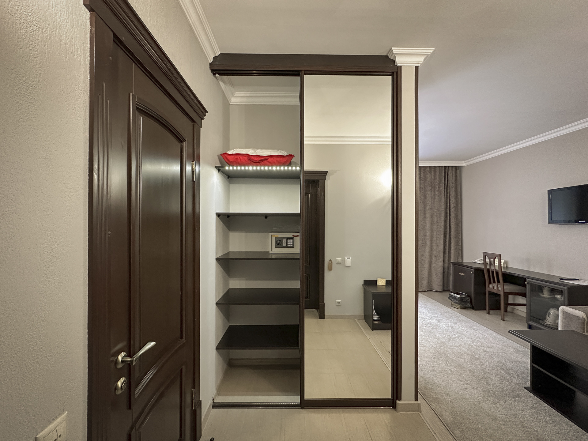 — Лестницы с коврами. В отеле Скай Эльбрус мягкие и комфортные ступени, а дополнительные двери отделяют жилую зону апартаментов от звуков на лестничной площадке.