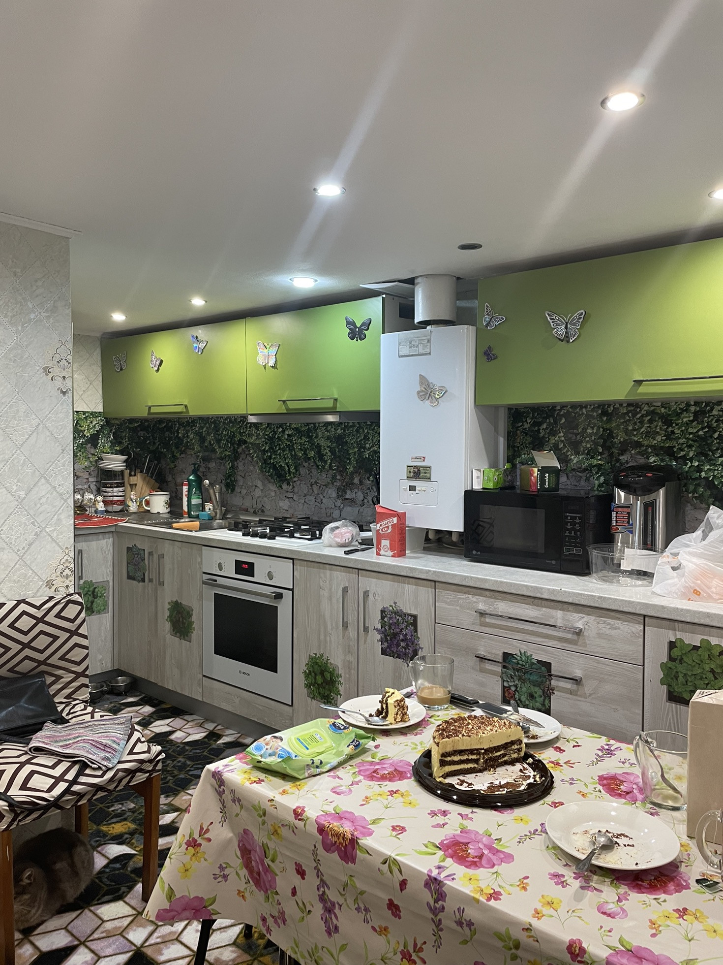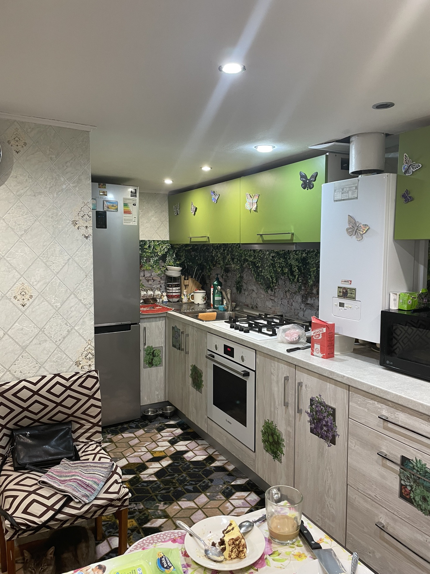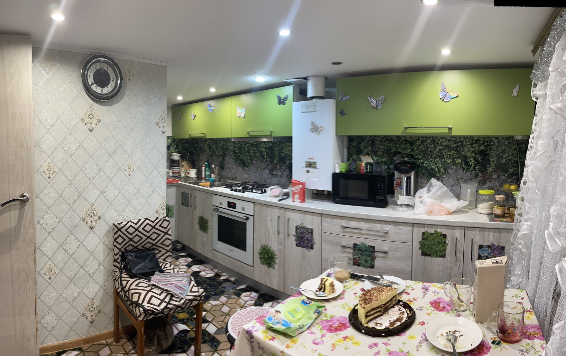 Отопление-газовый котел, батареи разведены по всему дому.