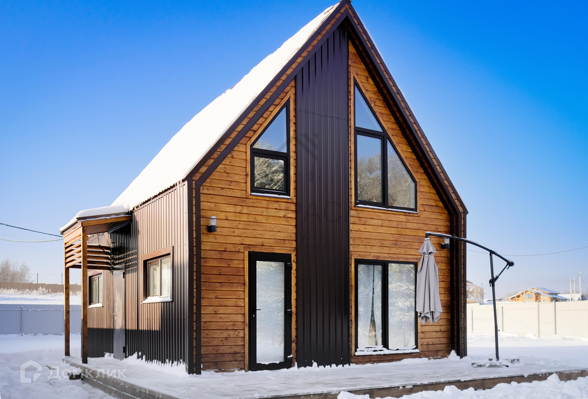 Дом площадью 100 кв.м. с учетом террасы, построен в 2023 году.