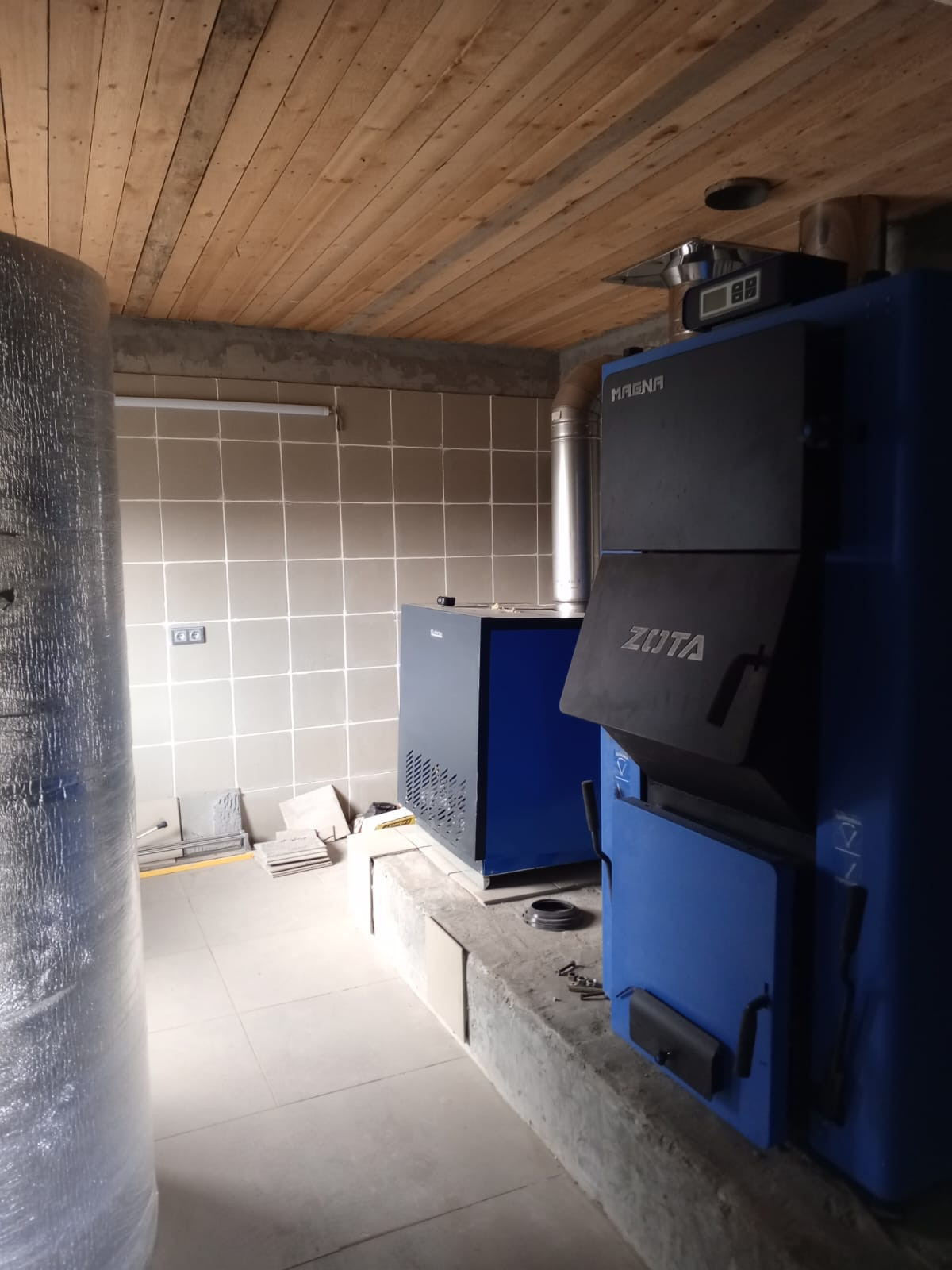 Электричество заведено, есть видеонаблюдение и интернет. Газ по границе участка. установлены котлы: твердотопливный и газовый.