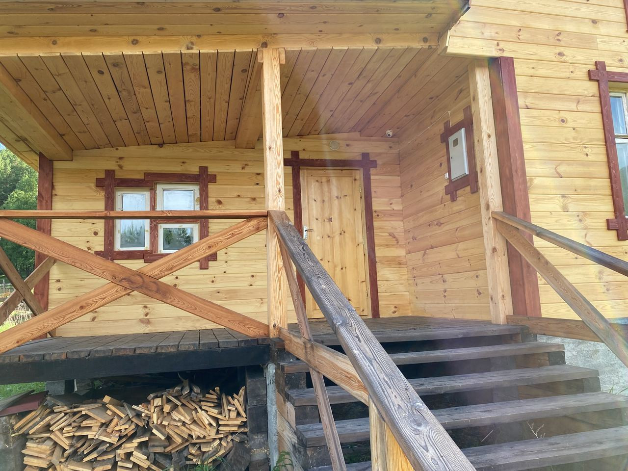 ⁃ Большая терраса под крышей дома