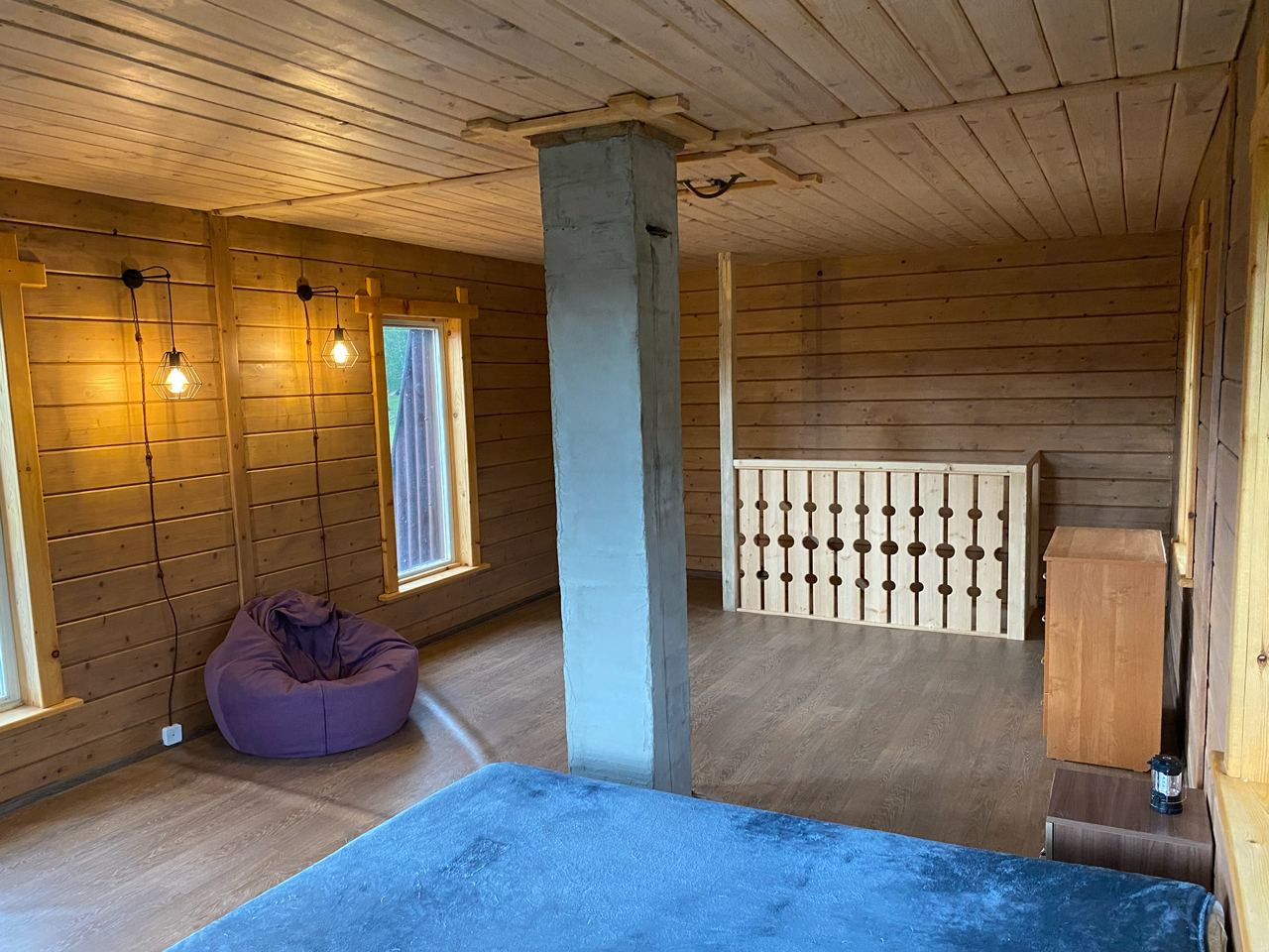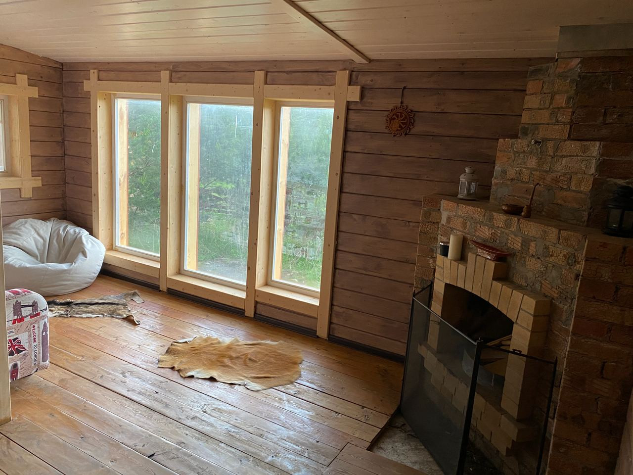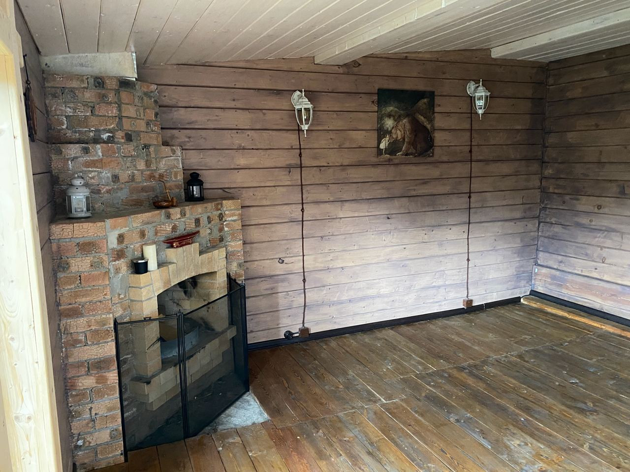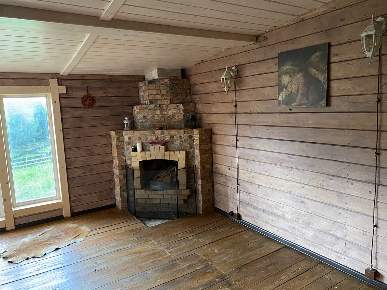 ⁃ В холле сложен красивый камин, сделан утепленный пол.