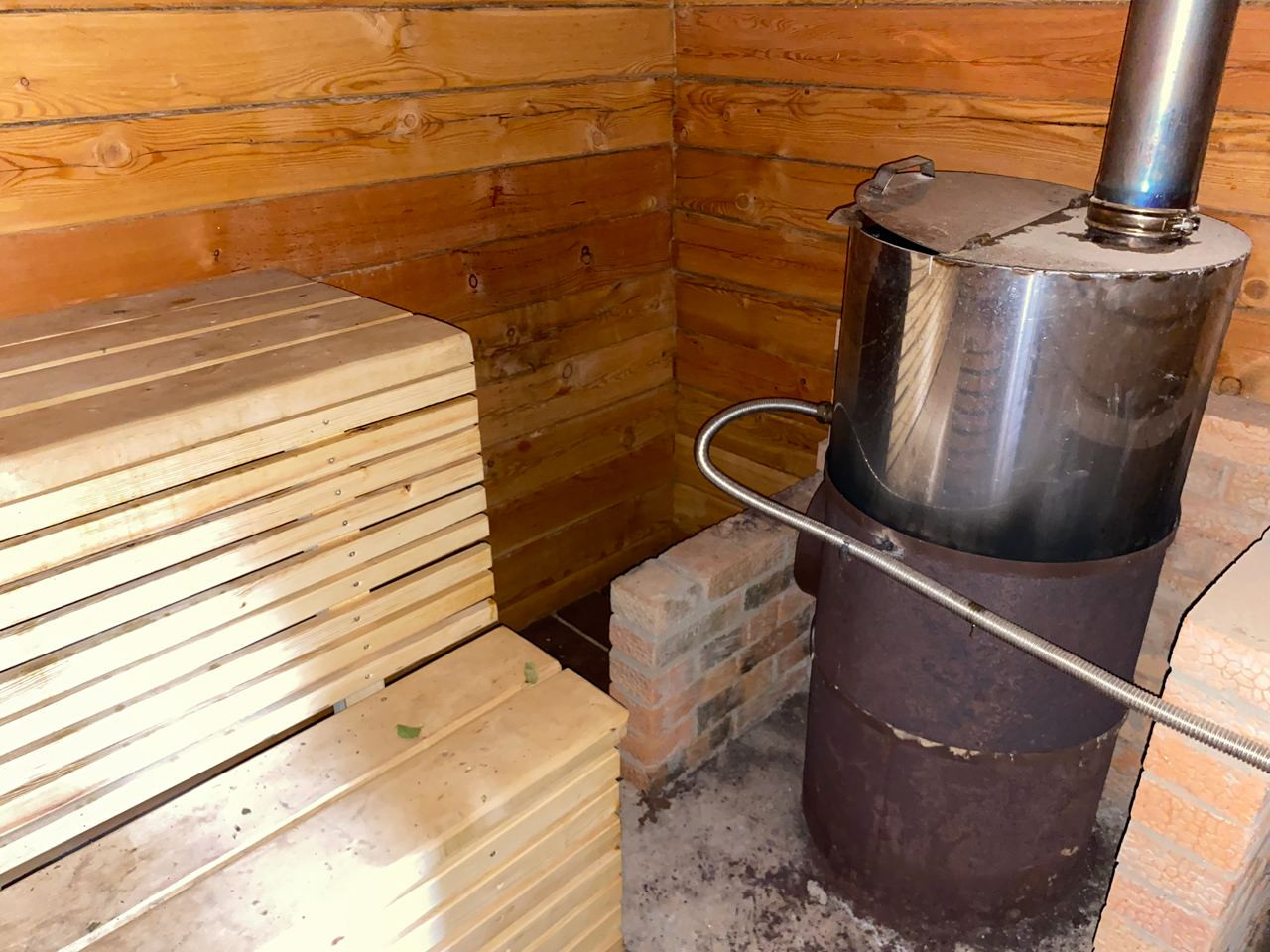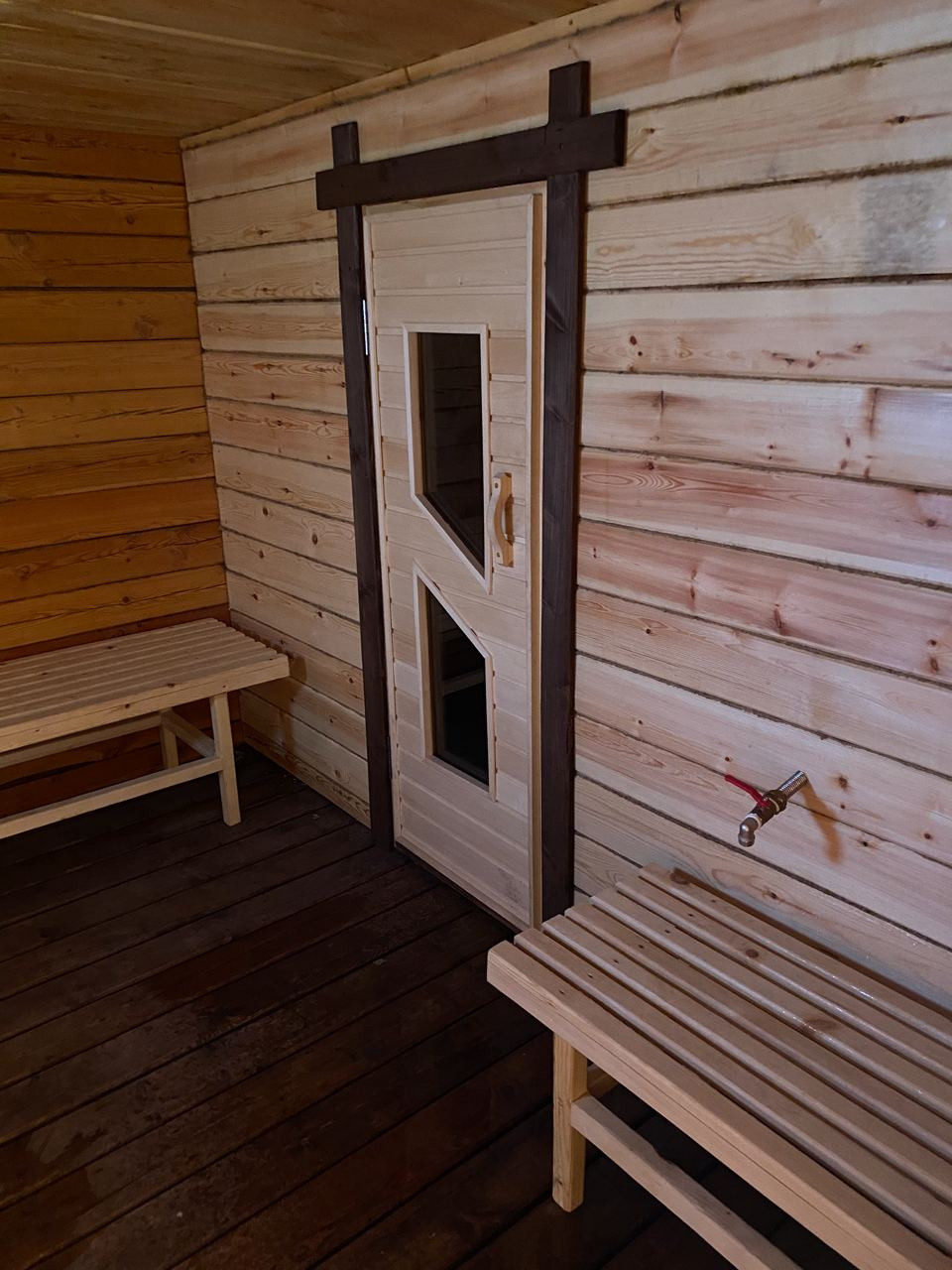 ⁃ Полностью лиственная баня из бруса. Полки и детали из березы. Есть спальное место на втором этаже, или можно использовать его как место для хранения.