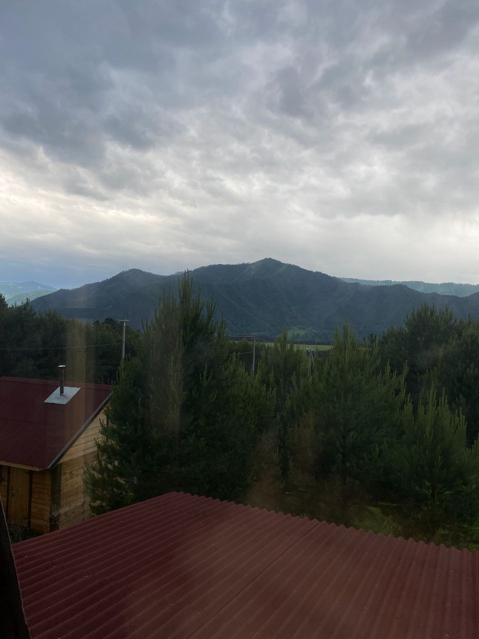 Через панорамные окна открываются виды на горные хребты.