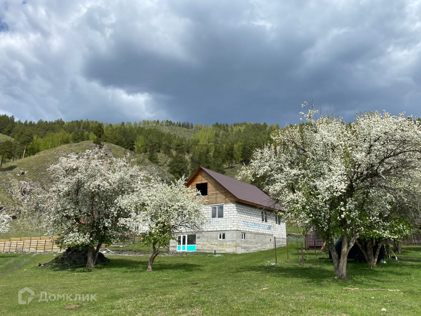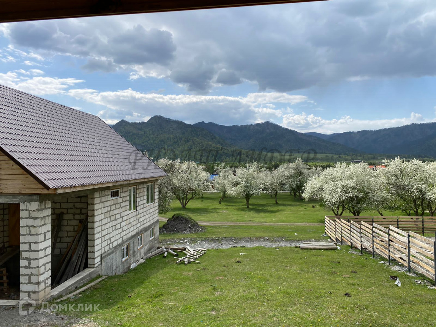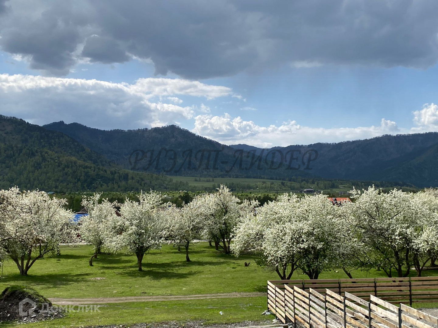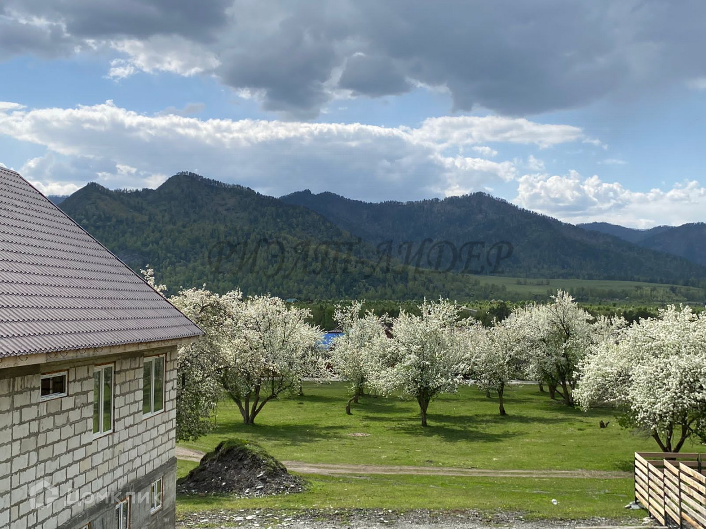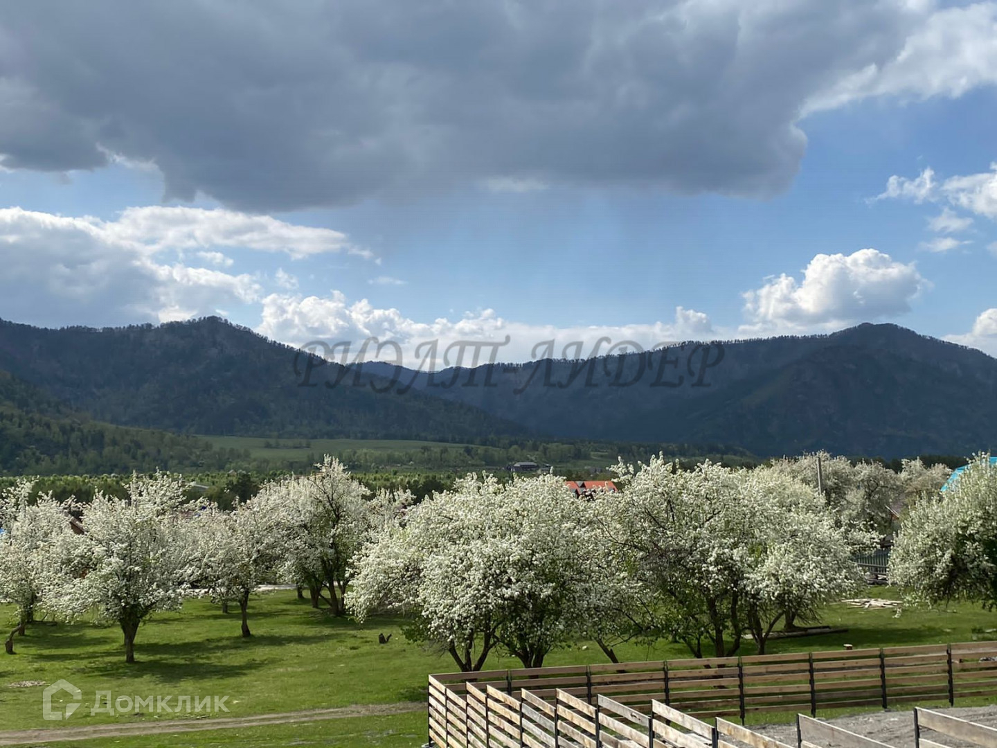 Видовый участок 30*40, расположен прямо у горы, вокруг яблоневый сад.