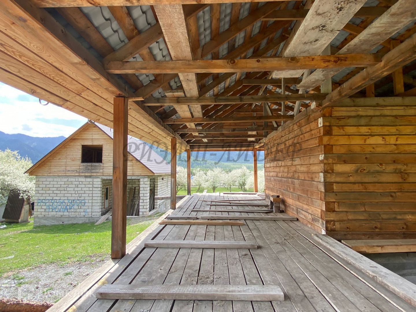 мансарда 56 кв.м. (предусмотрен вход с тамбура, в доме предусмотрено место под камин. Прекрасная кедровая баня 4,5*4,5 м. с большой террасой и шикарным видом на долину, в бане устроен слив в собственную яму, установлена большая печь из метровой трубы.