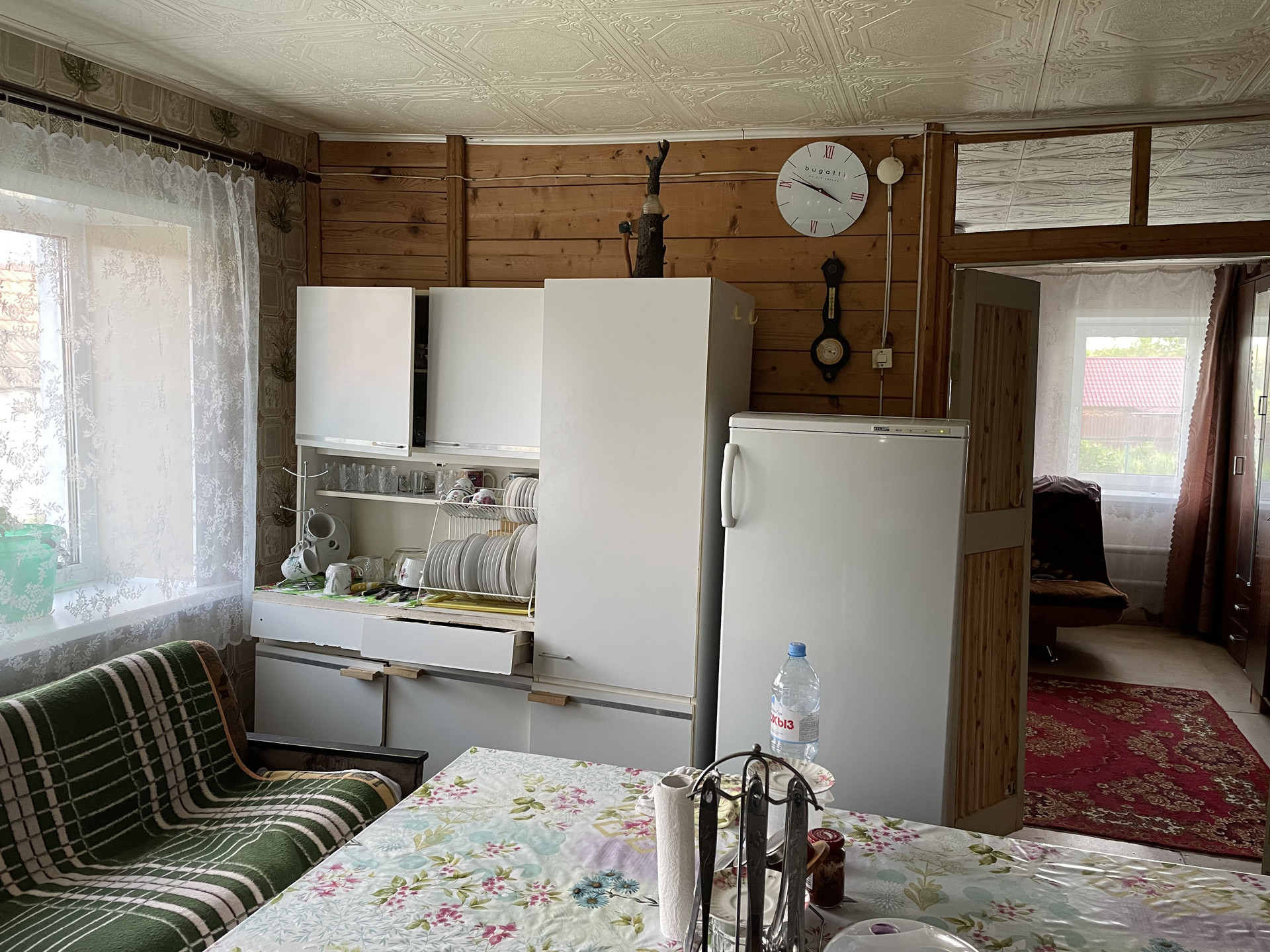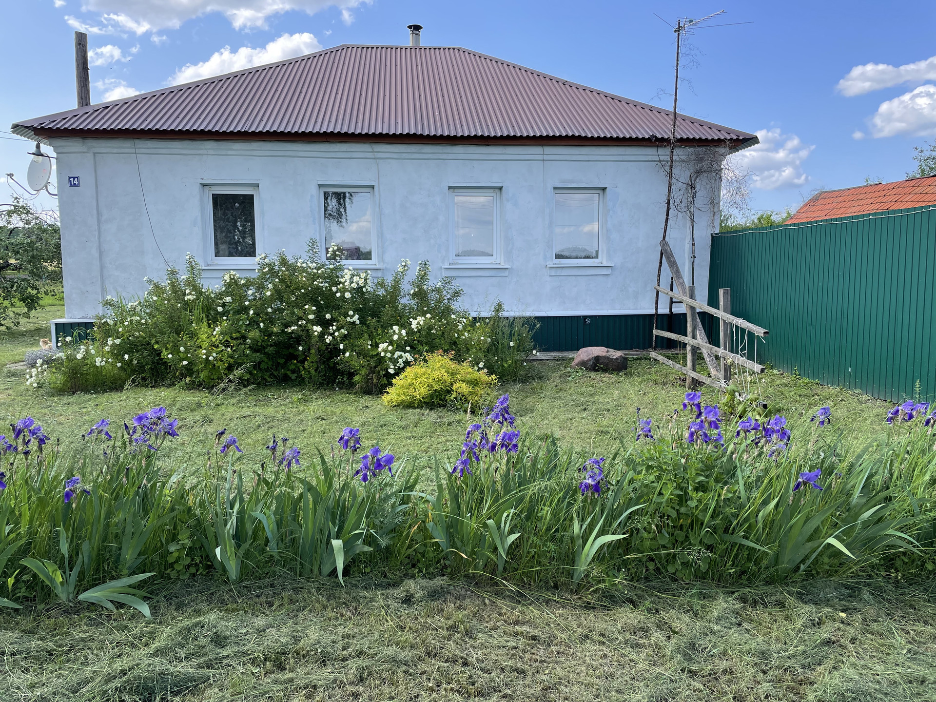 Кирпичный дом расположен в живописном месте. В доме имеются все условия для постоянного проживания.  Светлые и просторные помещения - спальня с двумя окнами и зал с тремя окнами (все окна выходят на улицу), просторная кухня с двумя окнами, выходящими во внутренний двор, вместительная прихожая с одним окном . В доме установлена печь из кирпича, которая может использоваться в дополнение к газовому отоплению. В доме имеется баня с душем и туалет. На участке много плодовых деревьев и кустарников: яблони, груши, сливы, вишня, черешня, виноград, облепиха, калина, малина, ежевика, смородина. На участке размещены хозяйственные постройки, включая сарай для дров (с дровами), каменный гараж и погреб. К участку, на котором расположен дом, примыкает еще один. Оба участка принадлежат одному собственнику и продаются вместе. Кадастровый номер данного участка 48:17:0340114:13, его площадь - 43 сотки. Оба участка имеют плодородную землю.