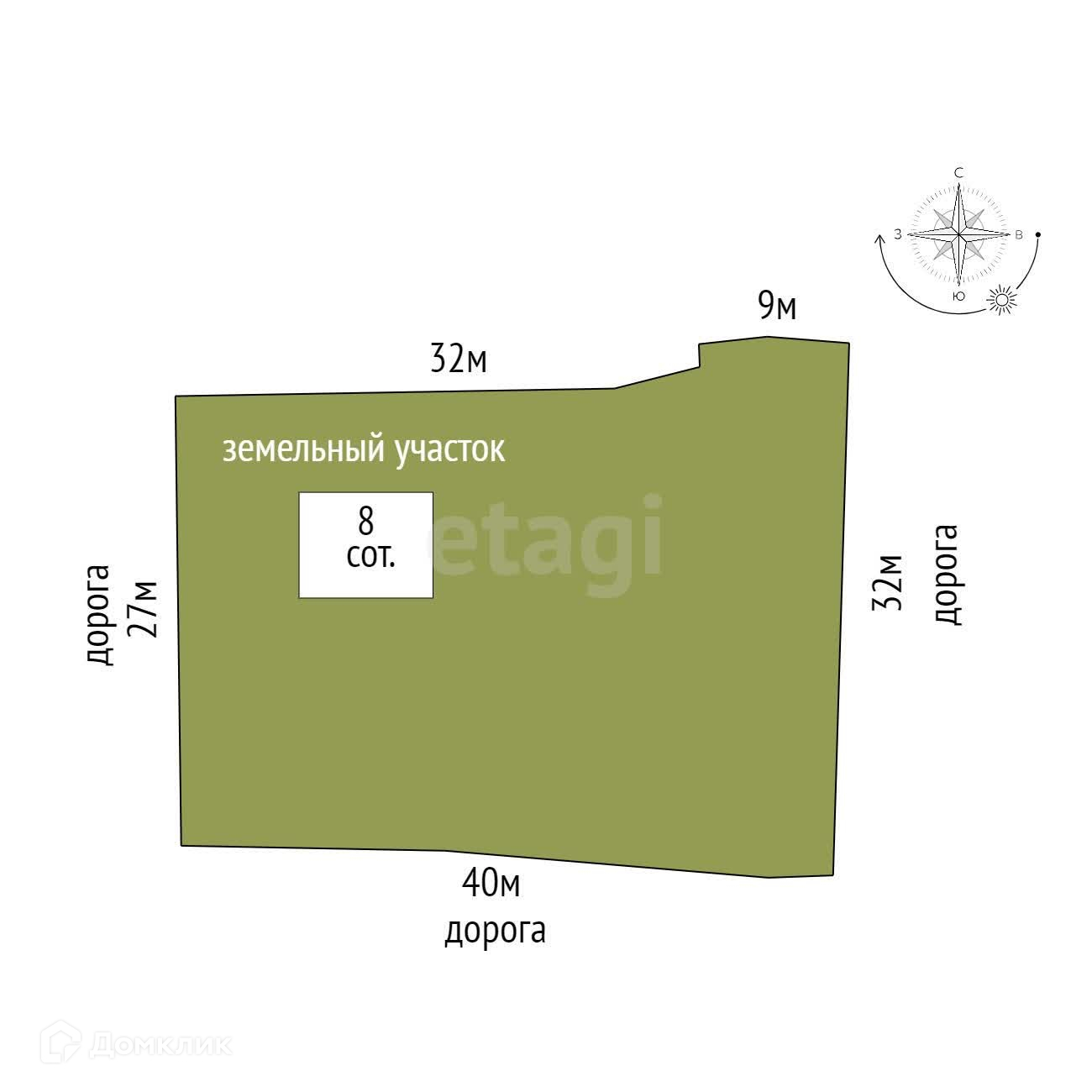 Площадь участка 8 сот.
