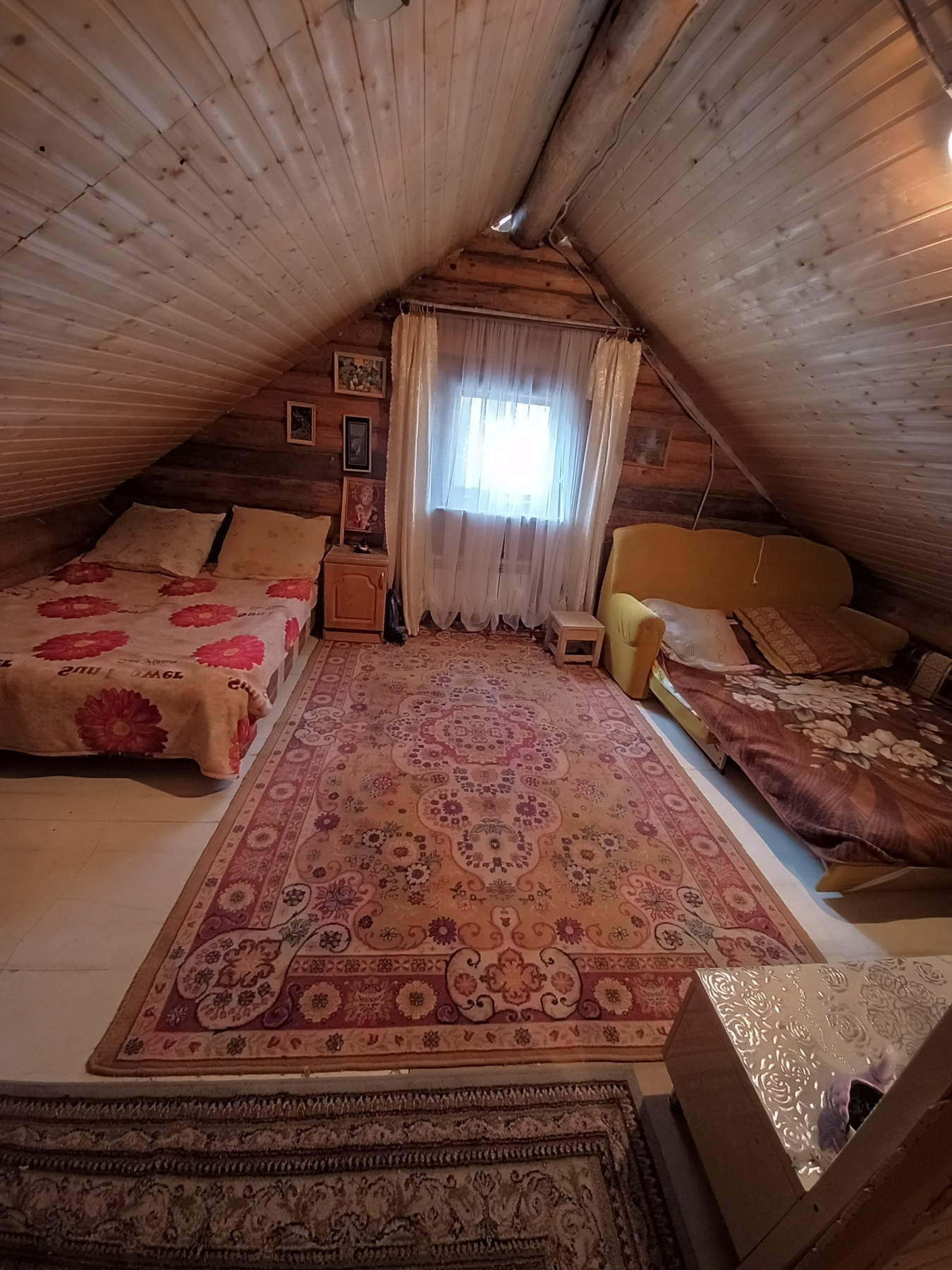Дом бревно ручной рубки.2011 г постройке.баня в доме.газ по участку.свет вода в доме.туалет на улице.забор по периметру 200 метров.два входа под грузовой авто.возможно поделить на два участка.первая линия участок угловой.подьезд асфальт.площадь первого этажа предбанник 15 м2 промывочная 9 м2 сауна 9 м2.второй этаж две комнаты 20м2 и 9 м2.фундамент капитальный под всем домом.